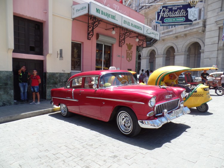 O Café Taberna (Calle Mercaderes, nº 531) em Habana Vieja é muito antigo e tradicional (fundado em 1772). Paramos lá por volta do meio dia para tomar um drink e fomos premiados com música cubana da melhor qualidade. Uma banda completa com violão, teclado, trompete e percussão tocava salsa enquanto um casal de dançarinos profissionais rodopiava frente ao palco. Ao perguntar a um dos músicos se podíamos tirar uma foto da banda, ele mais que depressa nos convida a subir ao palco tocar maracas! Dia quente, Edevaldo trajando uma habanera (camisa) branca e chapéu panamá, misturou-se aos músicos, que trajavam a mesma coisa! Descobrimos depois que lá costumam se apresentar as melhores bandas cubanas, como o lendário Buena Vista Social Club!