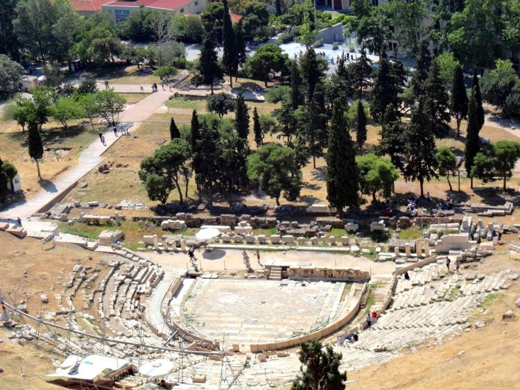 A Acrópole conta ainda com um segundo teatro – o de Dionísio, o Deus do Vinho. Diferentemente do de Herodes Ático, ele não foi restaurado. O que existe hoje são as ruínas do teatro que foi construído por Licurgo entre 342-326 a.C.
