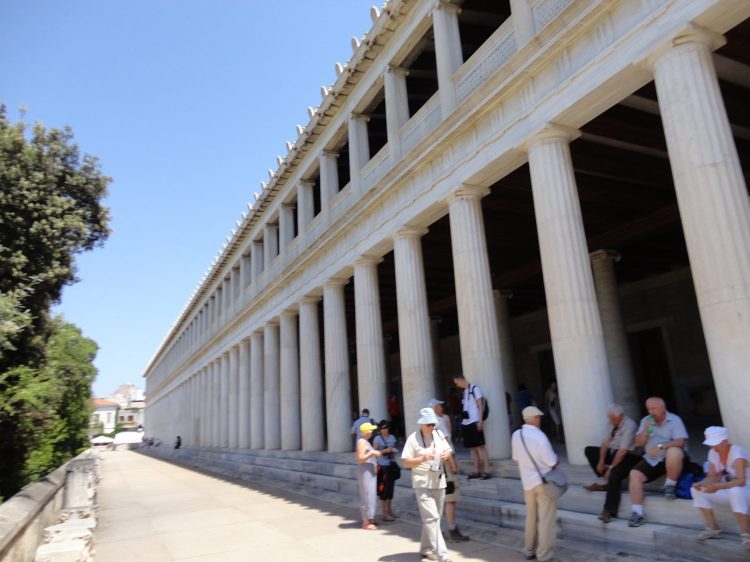 Essa Ágora é chamada de Ateniense, ou Antiga, para diferenciá-la da Romana. As escavações desse site começaram em 1930 e revelaram vários edifícios públicos, inclusive a prisão onde Sócrates (um dos fundadores da filosofia ocidental) foi encarcerado e executado. Também ficava lá a “casa da moeda” de Atenas – onde era cunhado o dinheiro da Grécia antiga. O principal edifício é a Stoa de Attalos (erguido entre 159 e 138 a.C) que hoje, após ser reconstruído, virou Museu.