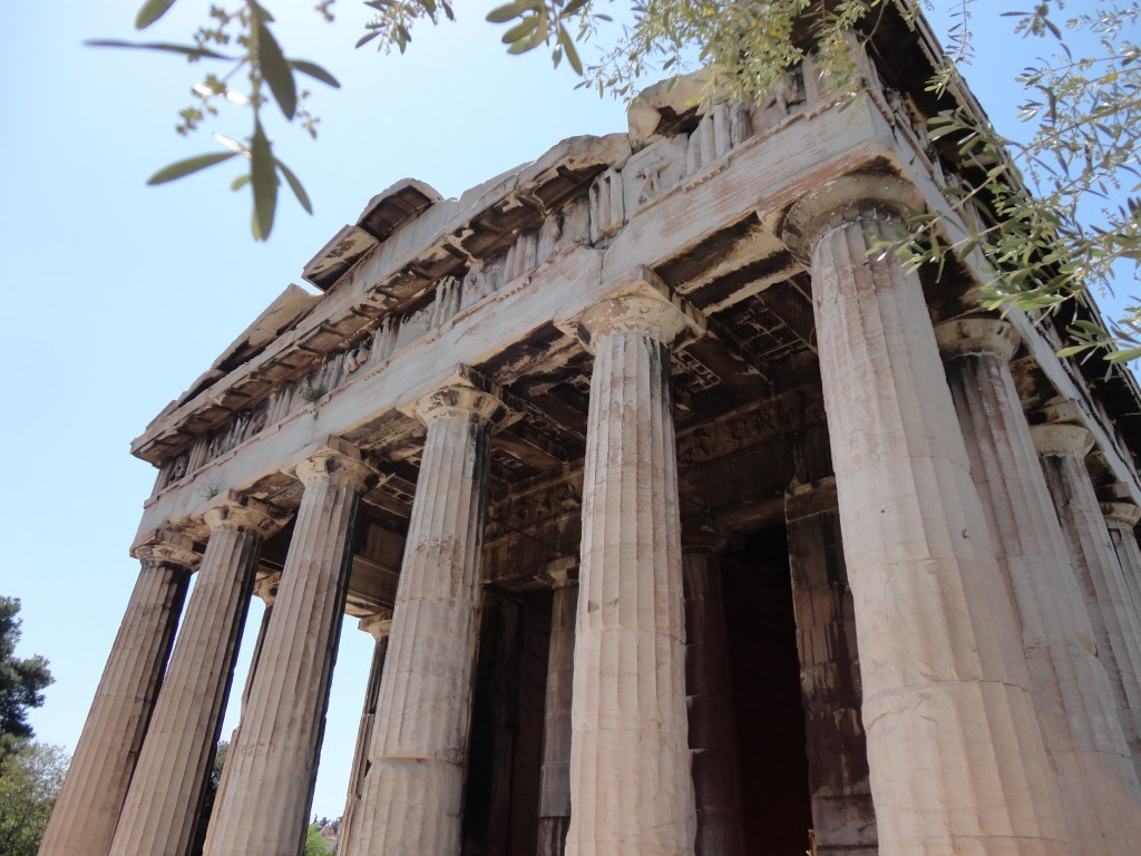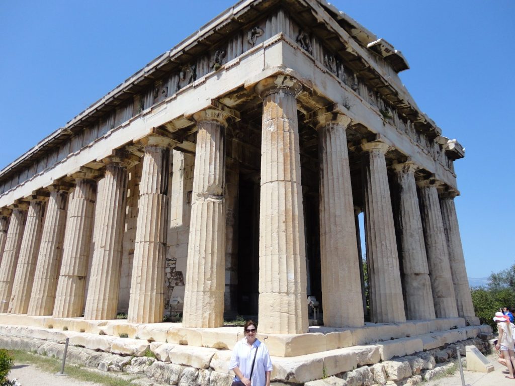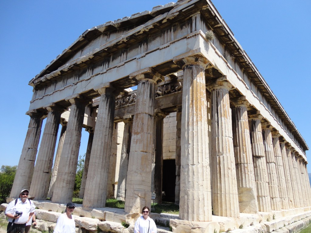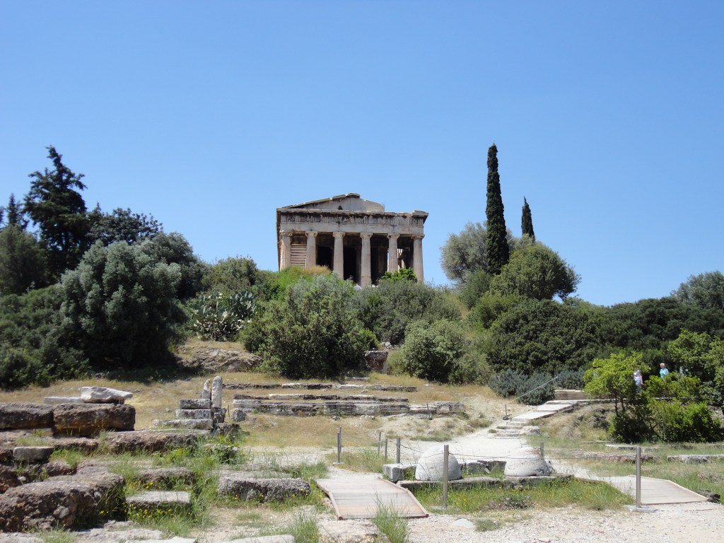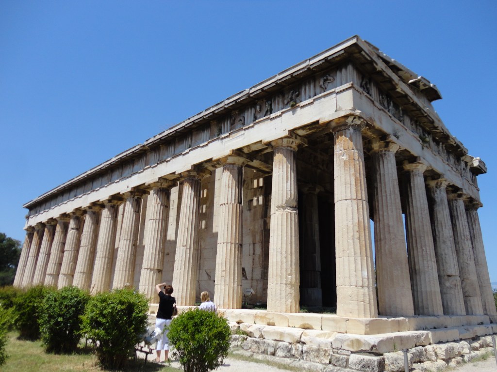 Entretanto, a grande atração mesmo é o magnífico Templo de Hefesto. É simplesmente o templo grego antigo mais bem preservado do mundo! E é tão grande que pode ser visto nitidamente do alto da Acrópole, como nessa foto que batemos lá de cima.