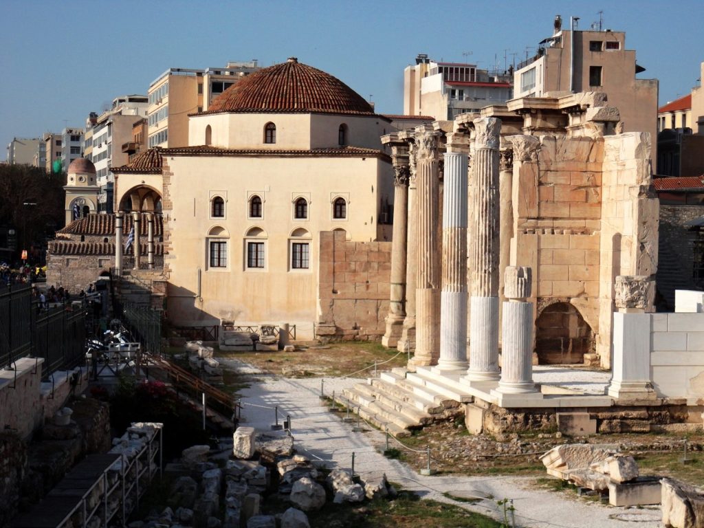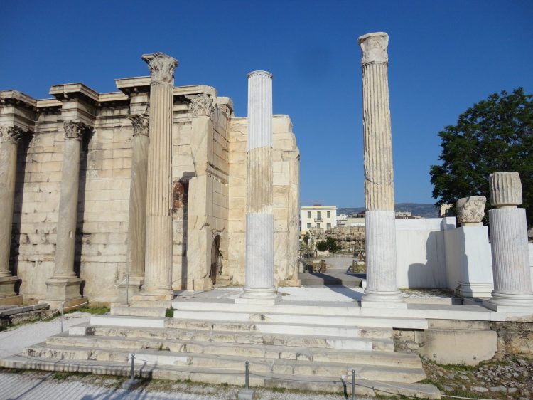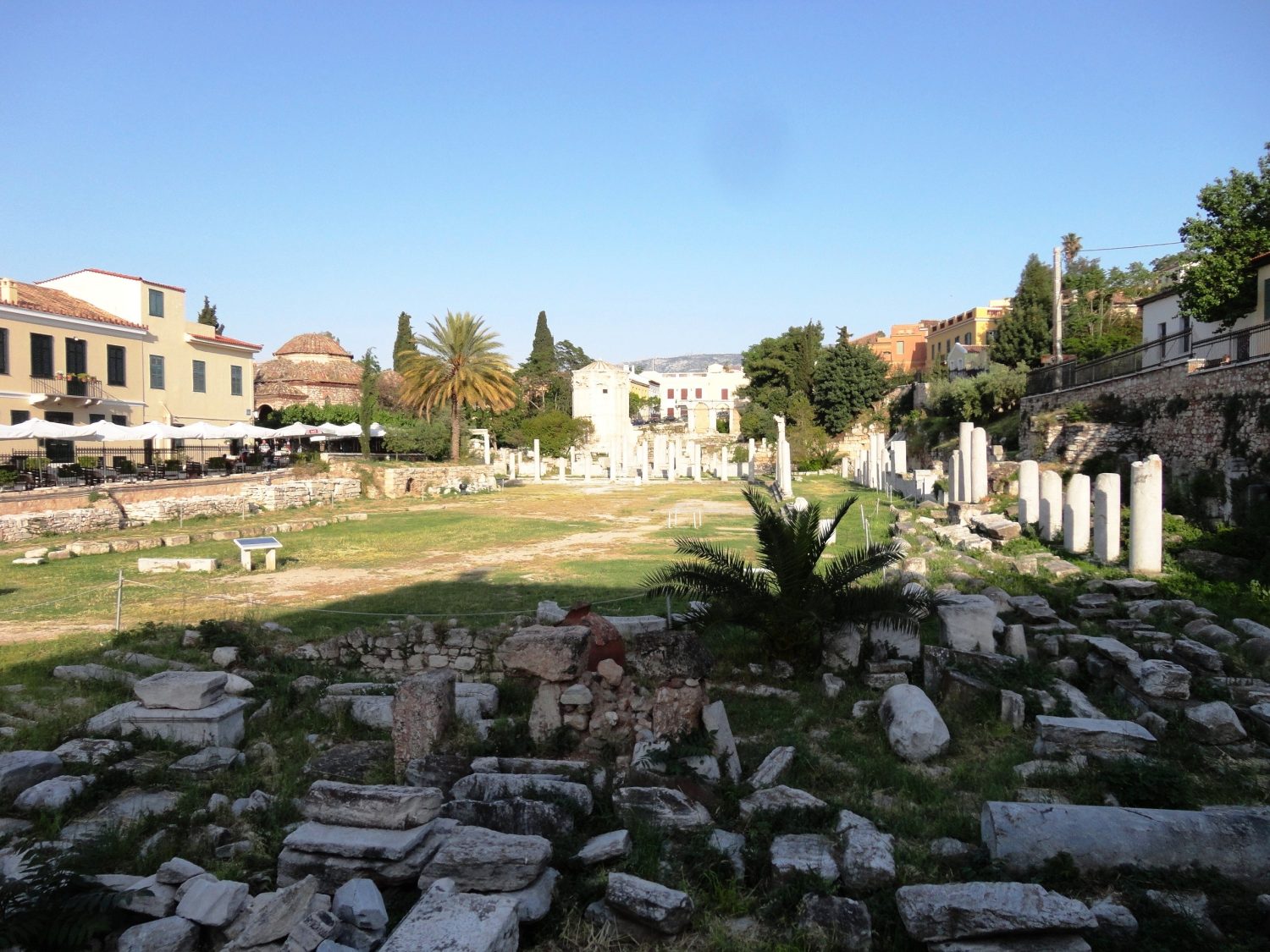 Quando a Grécia foi invadida pelos Romanos o imperador Augusto (27 a.C. – 14 d.C.) mandou construir essa Ágora em Plaka (Monastiraki), logo abaixo da Acrópole. Ela foi depois ampliada pelo imperador Adriano (117-138 d.C.). A praça de 98m de comprimento por 111m largura era cercada por uma colunata de estilo jônico que delimitava os quatro lados do mercado.
