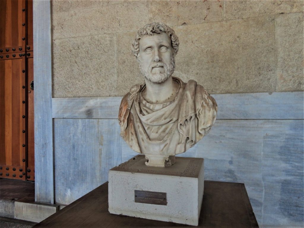 As estátuas de Afrodite, Antônio Pio, uma enorme cabeça de Tritão do Odeon de Agripa e duas representações da Ilíada e da Odisséia, do Poeta Homero, ficam no pátio.