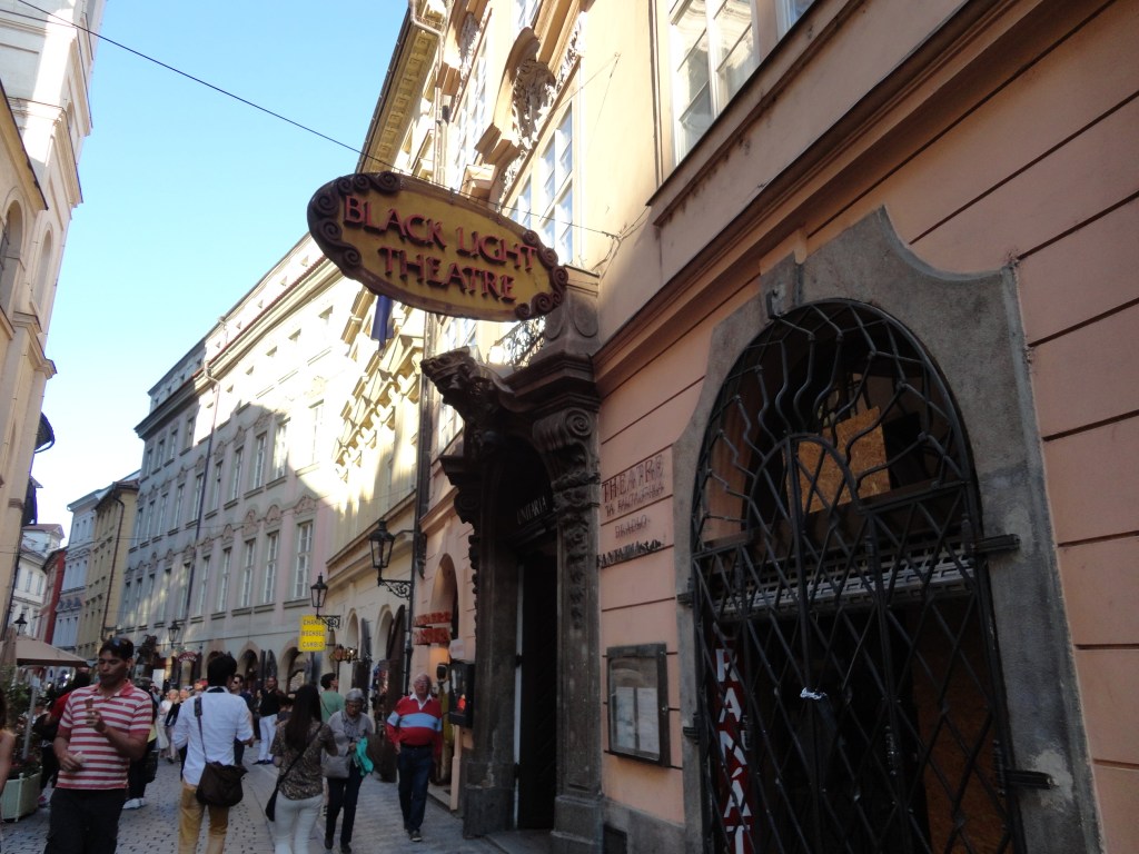 Em Staré Město há vários divadlos (teatros) de luz negra mais baratos e com uma pegada mais moderna. Depois de ter ido ao Ta Fantastika duas vezes resolvemos arriscar algo novo e fomos ver o espetáculo Dejà vu no Divadlo Metro. Foi OK – mas simplesmente isso. O teatro é bem pequeno e, diferentemente do Ta Fantastika, não veda totalmente a luz. A peça em si não tinha uma trama muito definida, embora o folheto dissesse que se tratava de como a vida moderna é controlada pela tecnologia e como ela está substituindo a interação humana. Algumas piadas divertidas salvaram a cena, mas não empolgou. Pagamos 590 coroas por pessoa (100 reais). Devíamos ter ido ver Aspects of Alice pela terceira vez!