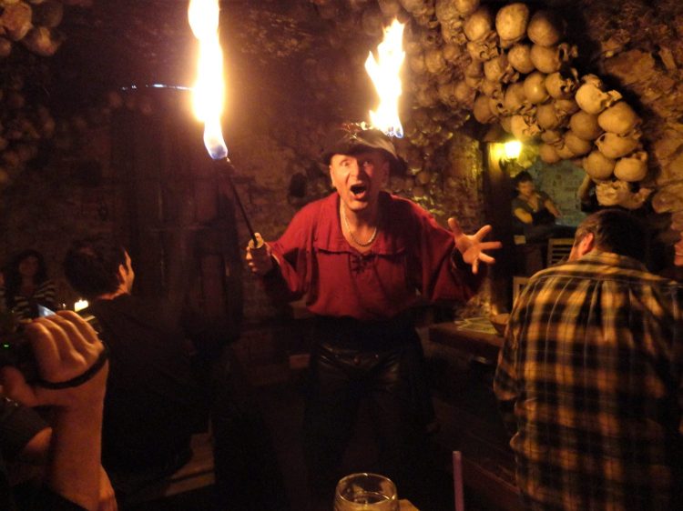 Fizemos também o Ghosts and Legends Tour by Haunted Prague e até que foi uma boa diversão undergeround. As histórias, mesmo sendo as conhecidas, são interessantes. O grupo era pequeno e o nosso guia era bem jovem e tentou fazer algumas piadas e brincadeiras para manter o interesse do pessoal. O passeio termina em uma masmorra – o que foi uma coisa inusitada. Entretanto esse tour nem se compara ao McGee´s.
