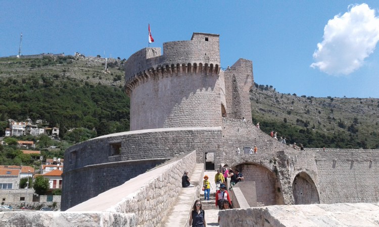 É caminhando por essas passarelas que se tem as melhores vistas do Adriático. Dali, por exemplo, é possível avistar Ploče, a “praia” mais próxima da Stari Grad. (Em tempo – praia é modo de falar – pois não tem areia!) A Muralha forma um quadrilátero cujas pontas terminam nas fortalezas de St Ivan, Lovrjenac, Revelin e Bokan. Passa-se ainda pela Torre Minčeta e pelos Portões de Pila e Ploče.
