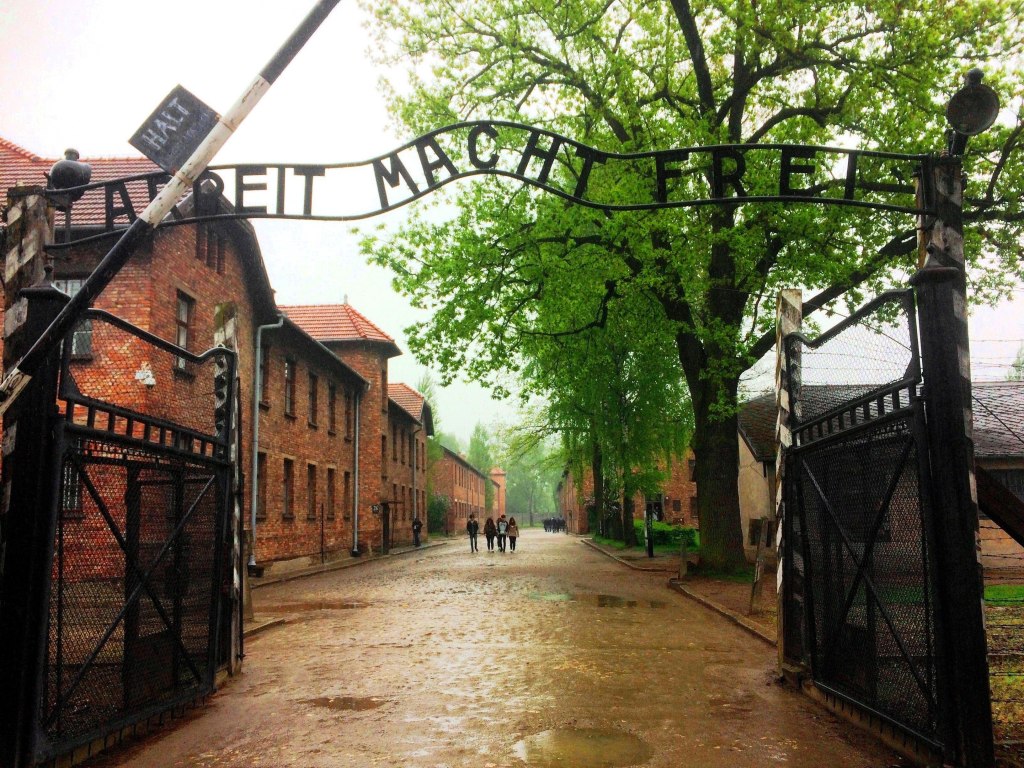 Enfim, o tour começa quando passamos pelo famoso portão com a frase “O trabalho liberta” – o que dava aos prisioneiros a errônea ideia que estavam em um Campo de Trabalhos Forçados (e não de Extermínio).