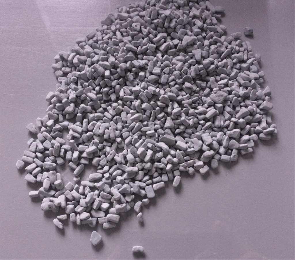 Centenas de latas do cianeto Zyklon-B, que era usado nas câmaras de gás, também foram encontradas (são essas pedrinhas brancas da foto que já tínhamos visto na visita à Fábrica de Schindler em Kazimierz).