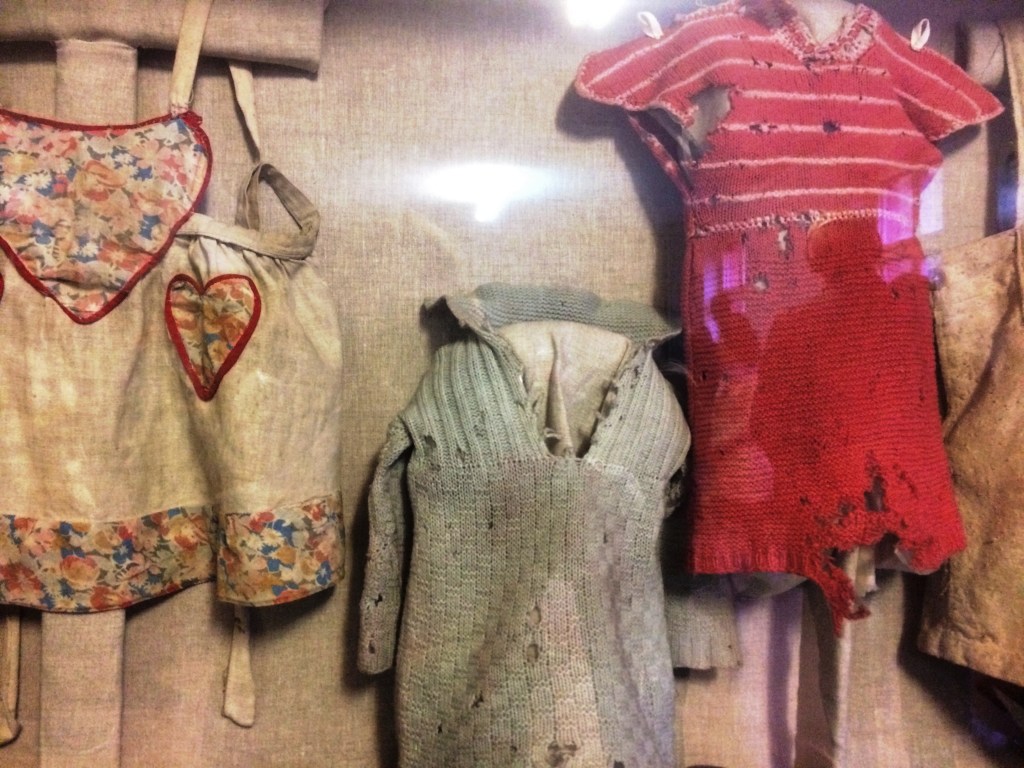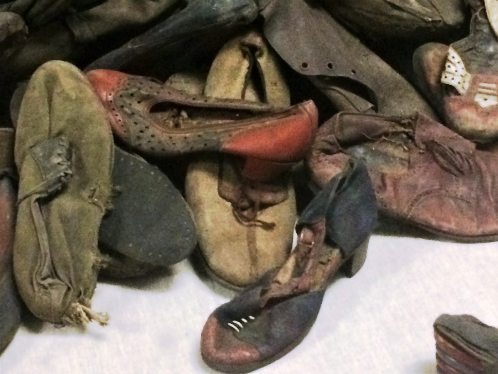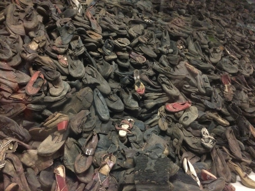 Outra coisa que se vê logo no início do tour, no Museu, é uma sala inteira de objetos pessoais que os nazistas retiravam das pessoas. Isso foi o que acharam após a liberação do campo em janeiro de 1945. Além dos poucos prisioneiros encontrados vivos, as tropas do Exército Vermelho também se depararam com 348.820 ternos de homem e 836.255 vestidos de mulher, além de montanhas de óculos e calçados, muitos deles em tamanhos infantis.