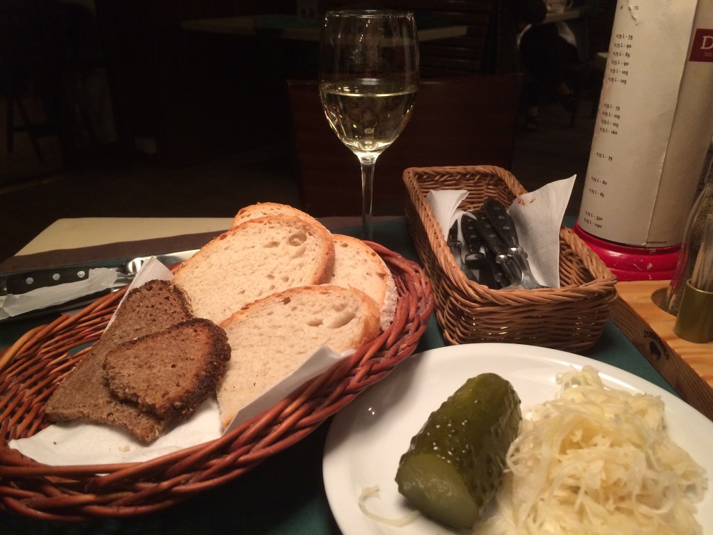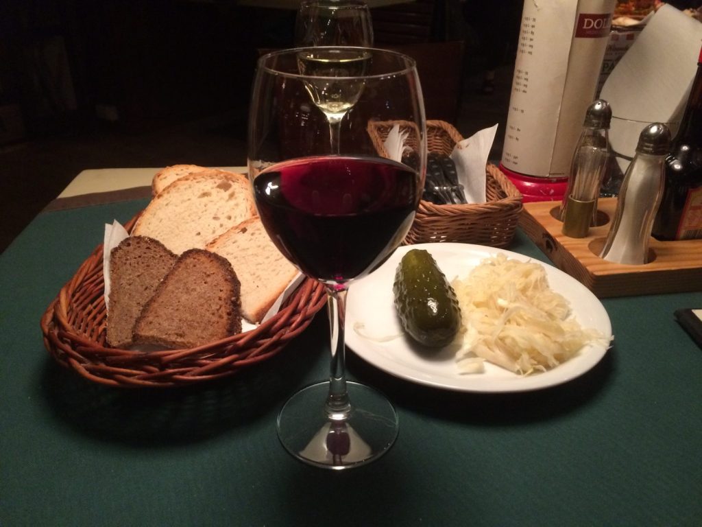 Passamos pelo Pod Wawelen, na Sw. Gertrudy 26, a caminho do castelo de Wawel, e resolvemos voltar à noite. O ambiente é descontraído e bem frequentado por turistas e locais. O atendimento é um pouco complicado e demorado, portanto não se pode estar com pressa. Gostamos bastante do lugar. Uma das entradas é por um antigo vagão de trem que foi reformado e por dentro a decoração é bacana com peças vintage, como um antigo telefone de parede. Tem vários pratos grandes com linguiças, pão e salada – então é bom ir com fome. Como já havíamos feito um lanche à tarde no Café Costa da Rua Floriasnka, apenas comemos uns aperitivos e tomamos um vinho enquanto curtíamos o lugar.