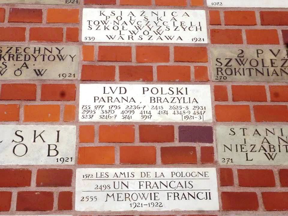 Subindo ao castelo Wawel podemos ver no muro os chamados “tijolinhos” de Wawel – placas que homenageiam os patrocinadores das obras de renovação do castelo nos anos 20 e 30. Uma das plaquinhas diz respeito à comunidade polonesa do Paraná!