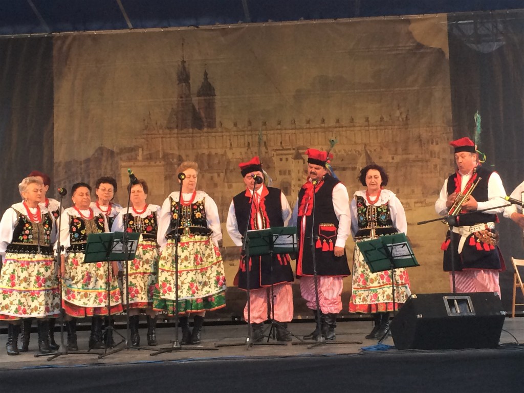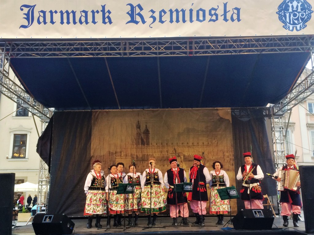 Na praça há vários restaurantes e cafés e nos fins de semana há feiras (uma boa opção para comer bem e barato – tem sanduíches de pão com linguiça, salgados…). Tivemos a sorte de pegar uma festa com apresentações folclóricas de canto e dança polacos. Quando fomos o sloty estava praticamente igual ou real, ou seja – R$1,00 = 1 sloty.