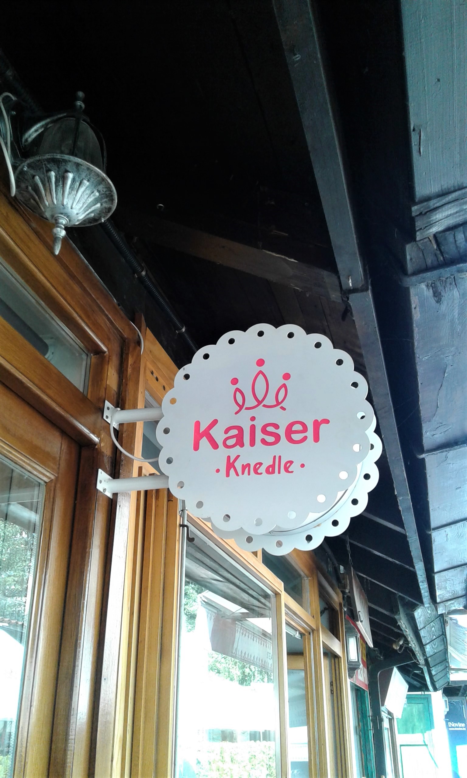 Tem ainda o knedle – que é um bolinho cozido recheado, muito popular na Áustria, na Alemanha e no Leste Europeu. Experimentamos no Kaiser Knedle (Bravadžiluk, 26). O lugar é bem bonitinho e há mesas internas para sentar, tomar um café ou chá, enquanto se come o bolinho. Pedimos um knedle de ferrero rocher, um crunch (crocante) e dois cafés macchiato. Tudo saiu por 11,80 BAM.