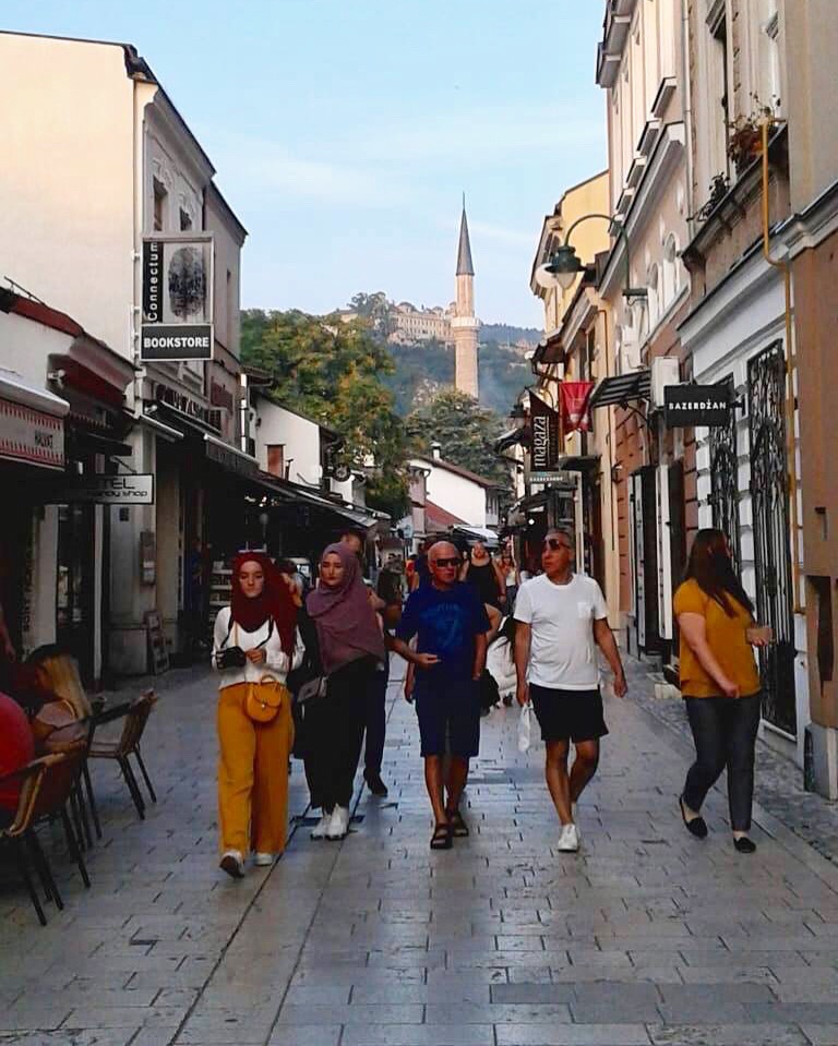 E foi justamente no bairro oriental e mais antigo (Baščaršija) que a gente se perdeu – num bom sentido! Caminhar pelas ruas paralelas ao rio Miljack, a Ferhadija e a Zelenih Beretki, e pelas as ruelas estreitas que as cruzam era nosso programa favorito – nosso e das centenas de turistas que perambulam por ali durante o dia e também à noite.