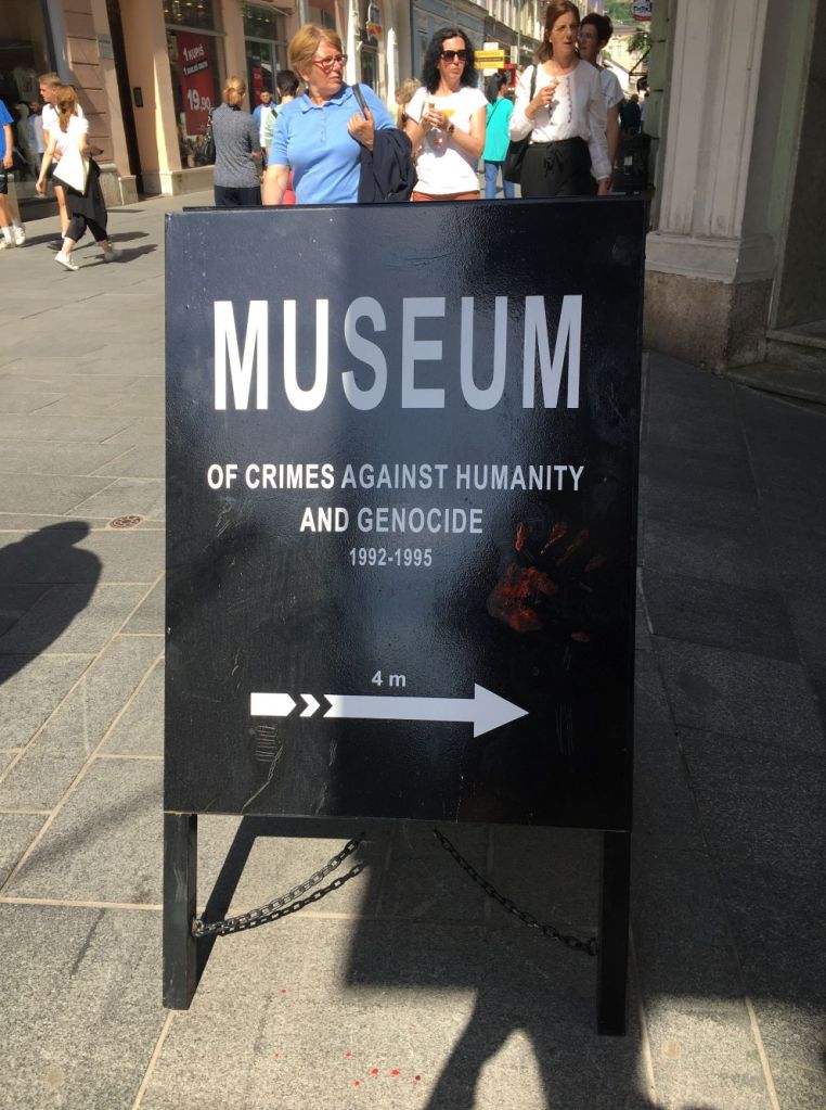 Quando a guerra acabou os bósnios que emigraram retornaram, mas muitos deles nunca deixaram Sarajevo e sofreram todos os horrores de viver em uma cidade cercada pelo exército sérvio por quase 4 anos. O Museu do Genocídio e Crimes contra a Humanidade, (na Saliha Hadzihuseinovica Muvekita 11, pertinho da Catedral) é pequeno, mas guarda inúmeros relatos e objetos dos sobreviventes da guerra e é inclusive mantido por eles e seus descendentes.