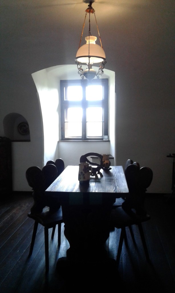 O Castelo parece grande, mas por dentro a sensação que a gente teve é de que ele é impressionantemente pequeno. São vários cômodos de tamanho médio ligados por corredores e escadarias super estreitos, o que o transforma em um grande labirinto. (Nisso o livro de Bram Stoker acertou em cheio, pois sozinhos por lá ficaríamos tão perdidos quanto o pobre Jonathan Harker!)