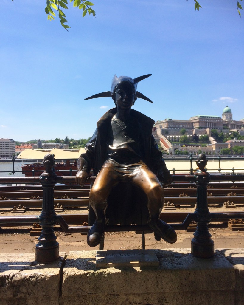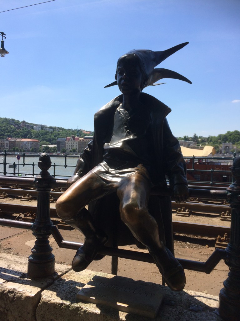 A estátua em bronze de Kiskirálylány é uma obra do premiado artista Lásló Marton que se inspirou em sua filha mais velha, Évike, para realizar a obra. A menina costumava brincar de “Princesa” no bairro de Tabán, logo abaixo do Castelo de Buda, usando um roupão de banho como manto e uma coroa feita de jornal. A estátua original está na Galeria Nacional Húngara e uma cópia é essa que hoje está nas margens do rio Danúbio (do lado de Peste – de onde se pode ver o Castelo de Buda), sentada sobre as grades dos trilhos de trem. A estátua é linda e as fotos são muito concorridas!