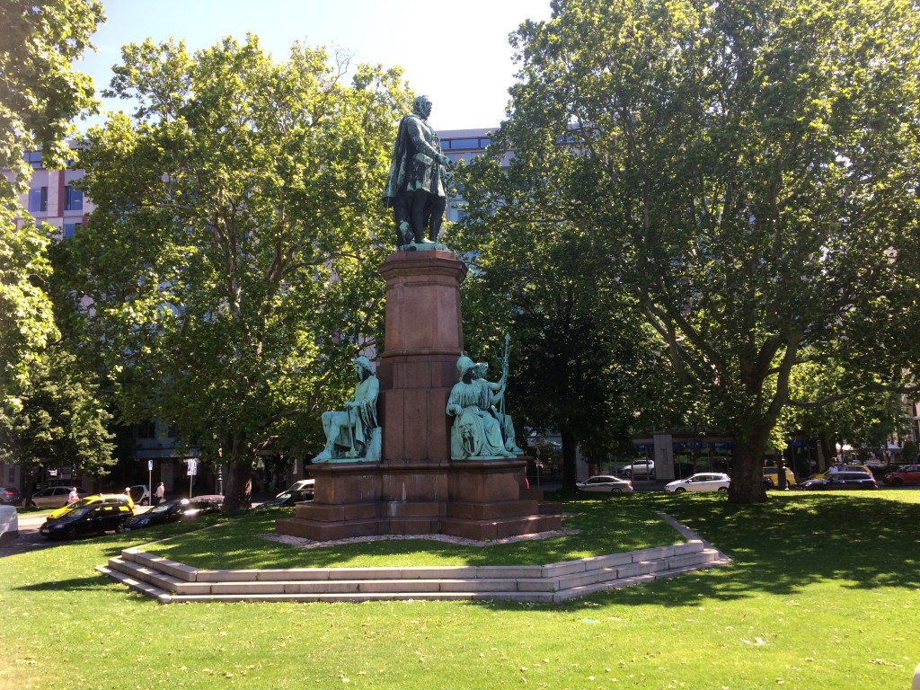 Outra estátua legal é a de um homem com um cavalete de pintura. Ignác Roskovics, um famoso pintor húngaro. Na verdade, ele nasceu em Bratislava, mas passou a maior parte de sua vida em Budapeste. A obra é do escultor ucraniano, Mihajlo Kolodko. Ela está posicionada de forma que a gente tem a impressão de que ele está pintando quem passa à beira rio.