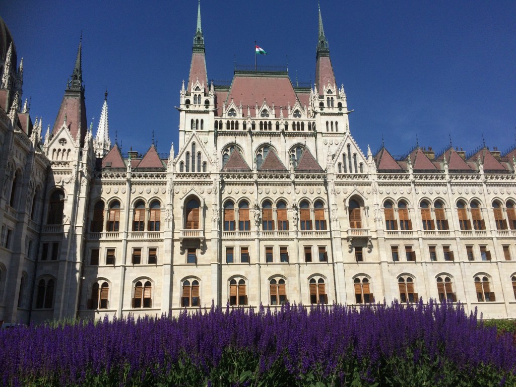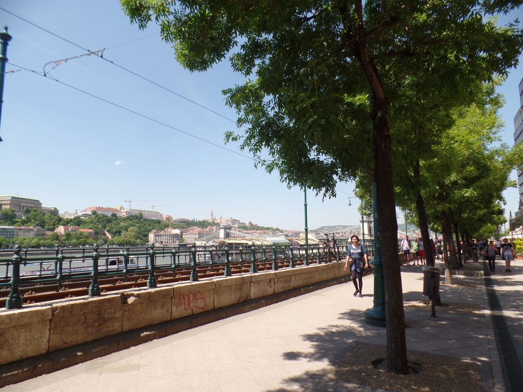Os jardins também são lindos e quando fomos estavam floridos com lavanda. Optamos por não visita-lo por dentro porque queríamos aproveitar o lindo dia de sol para passear de barco pelo Danúbio, mas certamente vale fazê-lo se você tiver tempo. Depois de passear bastante pela esplanada do Parlamento e tirar fotos de todos os ângulos possíveis e imagináveis fomos andando pela orla do rio Danúbio, pela Id. Antall Jozsef rakpart, em direção à Ponte Széchenyi Lánchíd.