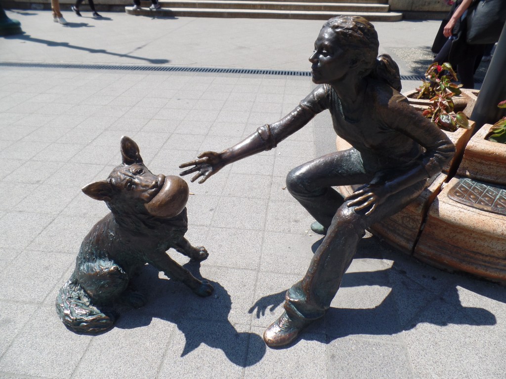 Na Vigadó Tér, à beira do rio, há ainda a estátua em bronze da menina brincando com seu cão. Ela fica bem em meio à praça e é uma obra do escultor húngaro Raffay Dávid instalada em 2007.