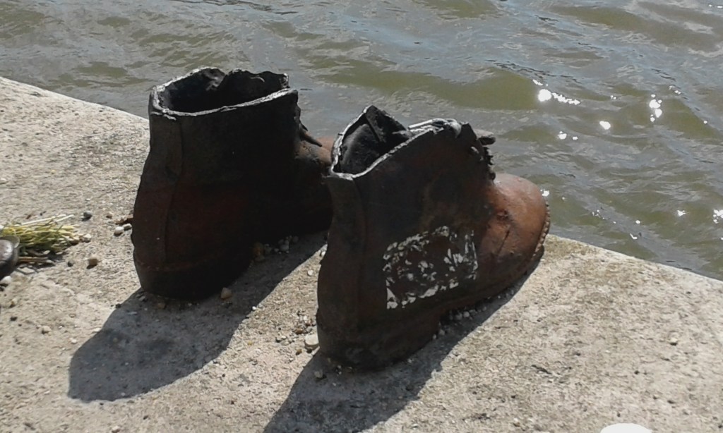 Muita gente quando visita não tem a menor ideia do que o memorial representa, pois não se informa antes de viajar. Uma pena. Sim são apenas pequenos sapatos de ferro, mas eles homenageiam as vítimas (muitas de origem judaica) que foram executadas e tiveram os corpos jogados no rio Danúbio durante a II Guerra Mundial, principalmente os que foram fuzilados coletivamente no inverno de 1944. O rio Danúbio era conhecido em Budapeste naquela época como “o Cemitério Judeu”. Não poderia ser uma homenagem mais singela e significativa. Quando visitamos havia várias flores e também algumas velas deixadas por pessoas para as quais os 60 sapatos realmente representam vidas. Achamos muito comovente. O memorial conhecido somente como “Sapatos às margens do Danúbio” fica na Id. Antall Jozsef rakpart , na margem direita do rio, entre as praças Roosevelt tér e Kossuth tér.