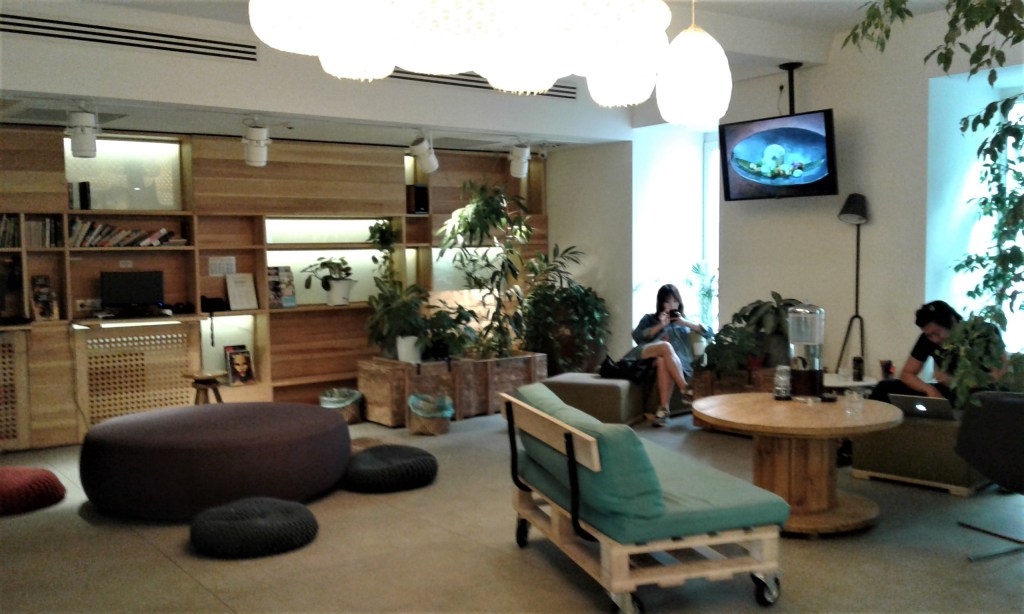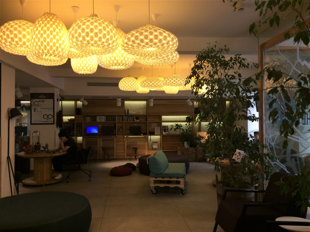 O Maverick fica na rua Kazinczy, 24, onde há vários restaurantes e além de ficar perto da Grande Sinagoga Dohány ele também fica a 4 quadras da rua Andrassy, por onde passam os metrôs. Ou seja, não podia ser melhor. O quarto era bem pequeno, mas bom, novinho e muito limpo. O wi-fi é grátis e a conexão boa. O lobby tem uma sala de estar bem bacana, com TV, puffs, sofá e business centre e a decoração é muito bonita. O café da manhã é no restaurante contíguo e pago à parte (é um pouco caro, 5 euros por pessoa, assim optamos por ele somente uma vez, mas foi gostoso – não é buffet e sim um menu com opções de combos). Um dos pontos fracos, entretanto, é que há uma faculdade quase em frente e à noite há bastante barulho na rua. Como é um hostel mais frequentado pelo público jovem, também há barulho nos corredores e quartos próximos. Fora isso, é muito gostoso, moderno, com funcionários jovens e simpáticos.