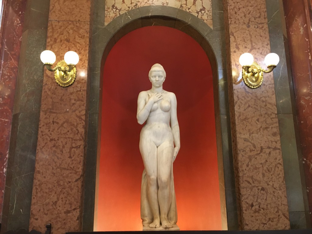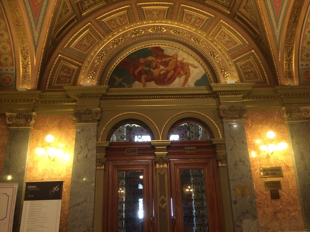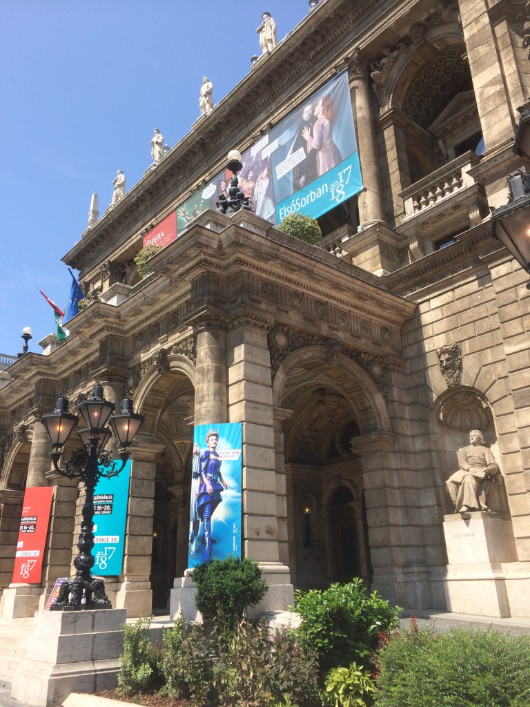 Assim, se como nós você já visitou a Ópera Garnier, em Paris, ou a Scala de Milão, pode apenas apreciar o hall de entrada e as escadarias, onde as fotos são permitidas. Na entrada há várias estátuas, entre elas a do grande compositor húngaro, Liszt. Nós passamos por ela com o ônibus turístico e resolvemos voltar e entrar no dia seguinte. Os filmes O Fantasma da Ópera e Operação Red Sparrow foram rodados ali.