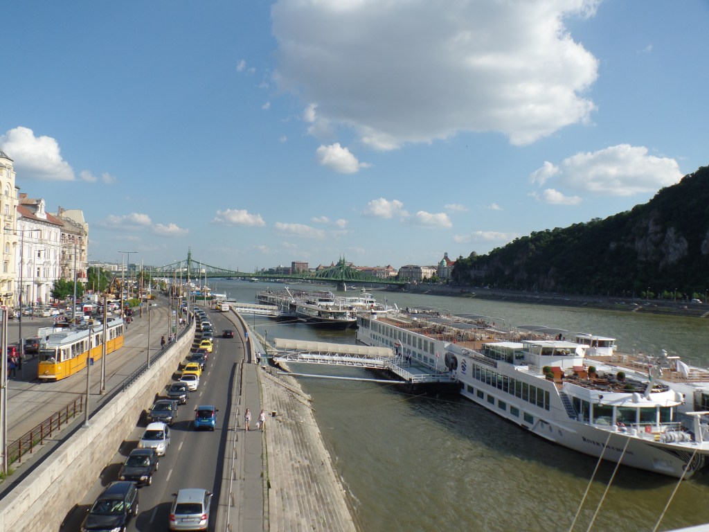 A vantagem de termos comprado o ticket de 48 horas do ônibus de turismo foi que ele dava direito a um passeio de barco pelo Danúbio. Assim, depois de almoçar tranquilamente no Dunacorso fomos ao embarcadouro procurar o nosso barco. Ele não era luxuoso, mas bem espaçoso e uma guia com um microfone ia explicando os principais pontos ao longo do percurso. Como o dia estava ensolarado conseguimos tirar lindas fotos! O passeio é rápido – cerca de 50 minutos apenas, mas vale a pena. O melhor ângulo para se fotografar o Parlamento é justamente de dentro do barco. A parada para descer e pegar o barco é número 13 , na Március 15 Tér, dock º 10 (abaixo da Ponte Elisabeth).