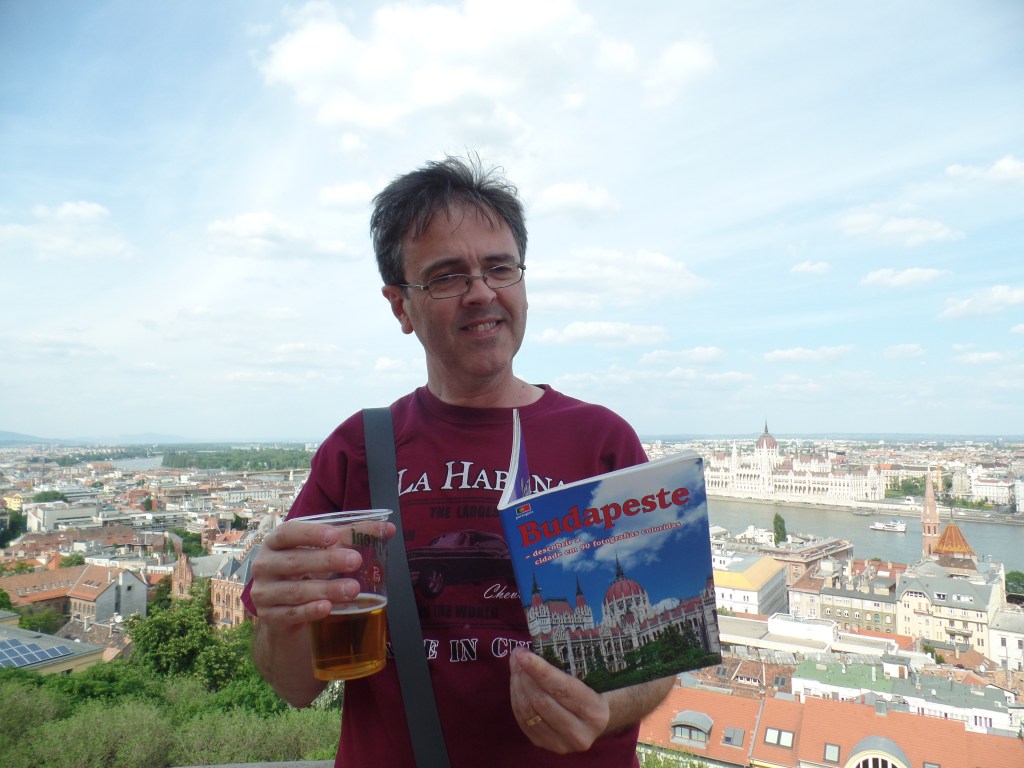 Na manhã seguinte, às 9:00, estávamos na rua Bajcsy-zsilinszky, próximo à entrada do metrô, esperando o ônibus vermelho da City Sightseeing Budapest. Compramos o bilhete de 48 horas que sai 45 euros por pessoa – um pouco caro, mas aproveitamos bem os dois dias, que estavam lindos e ainda fizemos o passeio de barco de uma hora, no final da tarde, a que os bilhetes também davam direito.