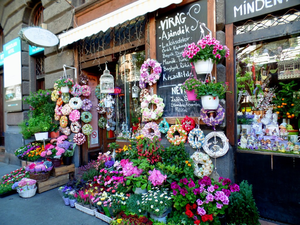 As floriculturas também estavam lindas! Viajar na primavera ou no verão faz toda a diferença! Se estiver passando pela Podmaniczky utca, não deixe de conferir a linda Z-Virág-Világ e suas tradicionais guirlandas.