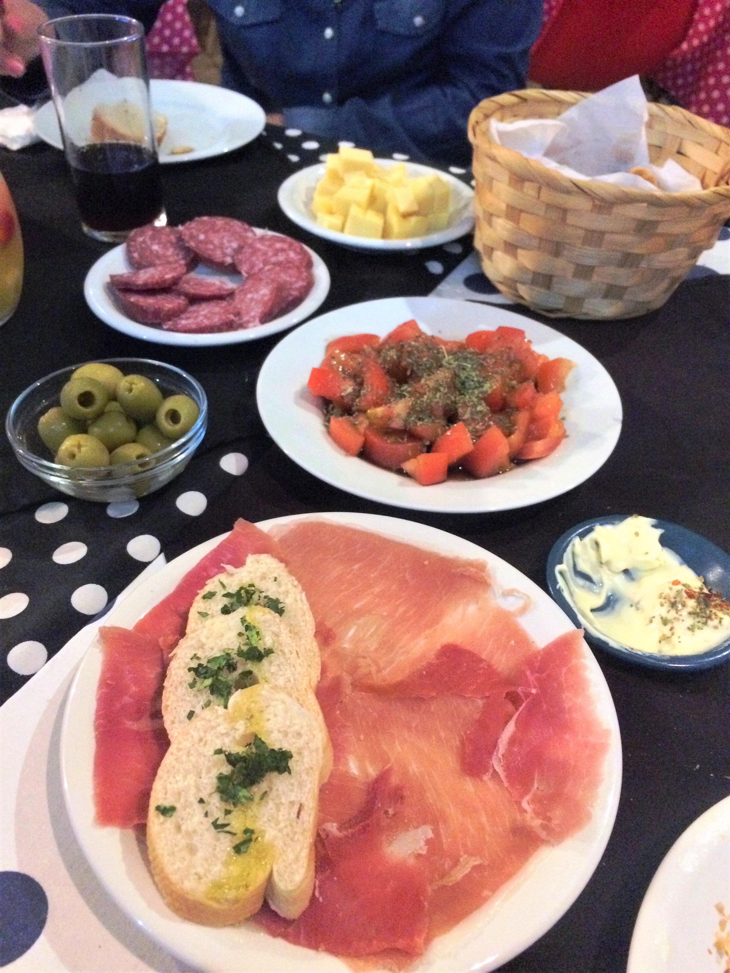 À noite fomos ao El Drugstore, que fica em uma das rés-do-chão no casario em frente à Igreja del Santísimo Sacramento. O lugar é muito descolado, com um ambiente colorido e divertido. Não estávamos famintos (tendo nos empanturrado no Gitana no almoço), então pedimos apenas uma picada além das bebidas. Foi uma ótima pedida. (Em tempo: o pagamento é apenas em dinheiro, por isso é bom se programar!)