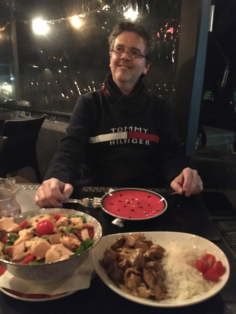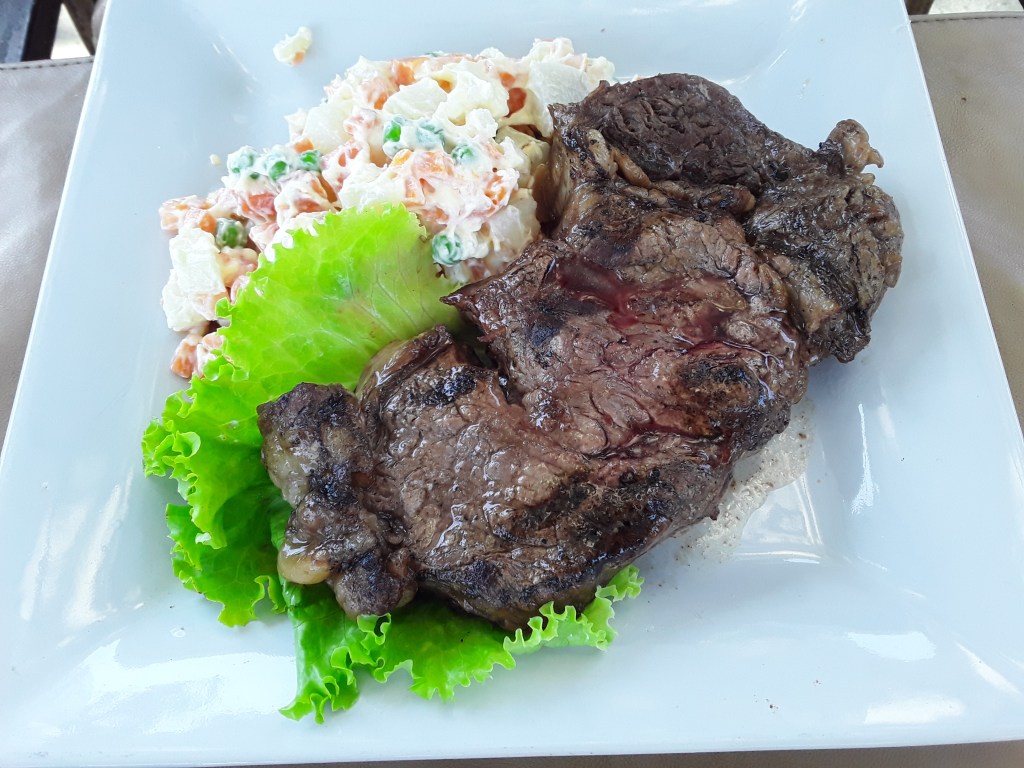 O Bohemia fica na Calle San Pedro, 142, equina da famosa Calle de Los Suspiros. Passamos por lá à tarde e reservamos mesa para almoçar no dia seguinte (o lugar é concorrido!). Ele dá de frente para o rio e o ambiente é um pouco fresquinho, portanto é um pouco carinho também. Ficamos na área externa e estava muito agradável. A comida compensa pois é mesmo muito boa! Escolhi a costeleta de cordeiro com purê e o Ede optou pela salada completa com vegetais grelhados. Tomamos duas taças de vinhos e apreciamos a linda paisagem.