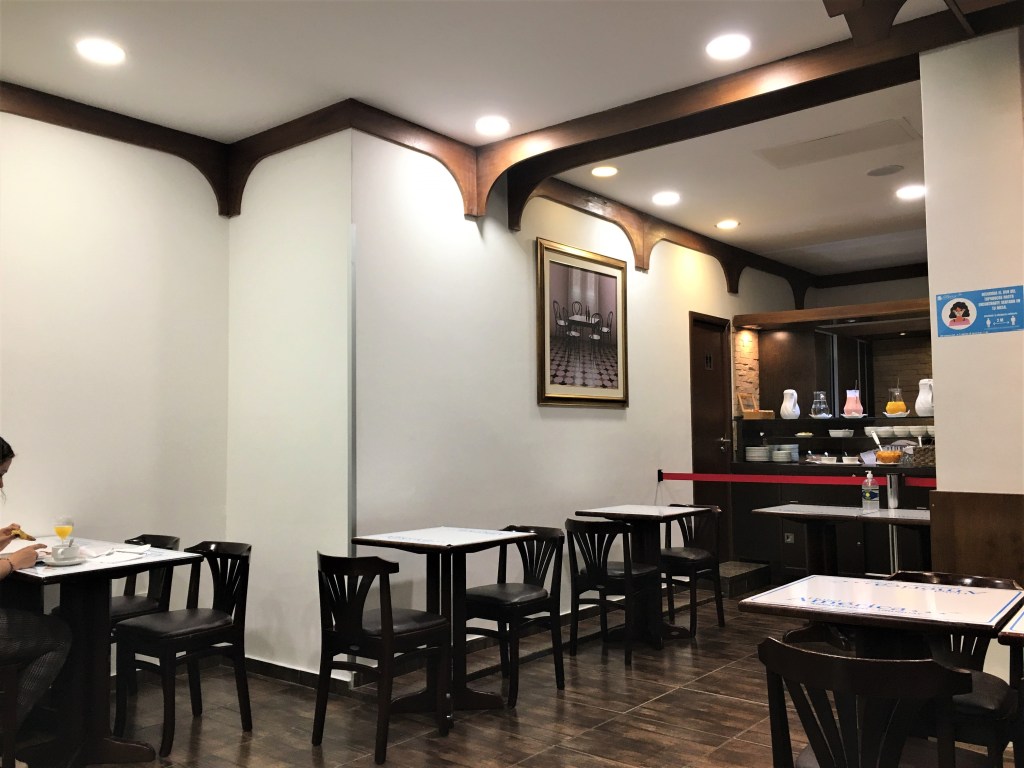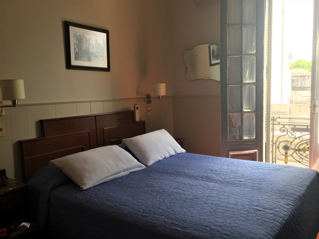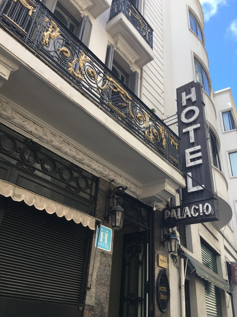 Já conhecendo melhor a cidade, em nossa terceira vez, resolvemos ficar novamente na Ciudad Vieja, agora no Hotel Palácio (Bartolomé Mitre, 1364), pois dessa vez éramos 4 e o fator preço pesou bastante (pagamos 320 dólares por dois quartos e 4 noites). O hotel fica pertinho da Calle Sarandí e das principais atrações históricas. O edifício é bem antigo e o que achamos mais legal foi o elevador com grades de ferro duplas. Só tínhamos visto outro assim em Florença, na Itália. A mobília também é antiga, os quartos são amplos e os funcionários atenciosos. Não servem café da manhã, mas na copa há café com leite à vontade para quem quiser (oferecido o dia todo) e também há um microondas para preparar um lanche. Praticamente ao lado está a Confeitaria Inglesa (Bartolomé Mitre, 1382), onde se pode tomar um com café e comer pães, bolos e doces.