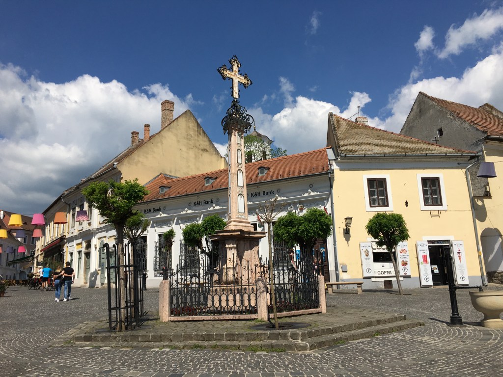 A praça principal chama-se Fö tér e no centro há uma cruz colocada ali para agradecer pela cidade não ter sido gravemente atingida pela peste bubônica séculos atrás. Em frente fica a Blagovestenska, a Igreja da Anunciação da Virgem Maria, que é de 1752.