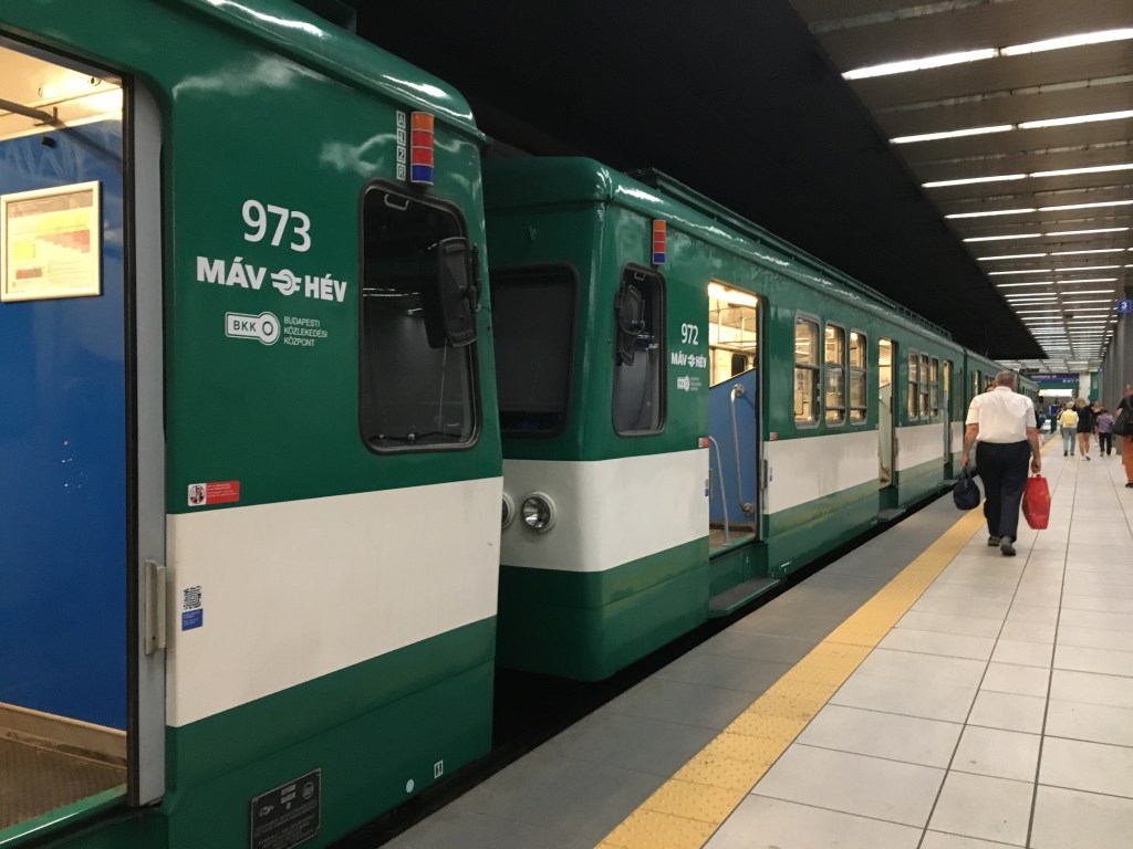 Saímos cedo, pegamos o metrô na estação Blaha Lujza tér e fomos até a Batthyány tér, já do lado de Buda (a mesma em que havíamos embarcado ao descer do Bastião dos Pescadores no dia anterior). Dali saem os trens da linha suburbana e passam de meia em meia hora. Pegamos o das 09:00 para aproveitar bem o dia.