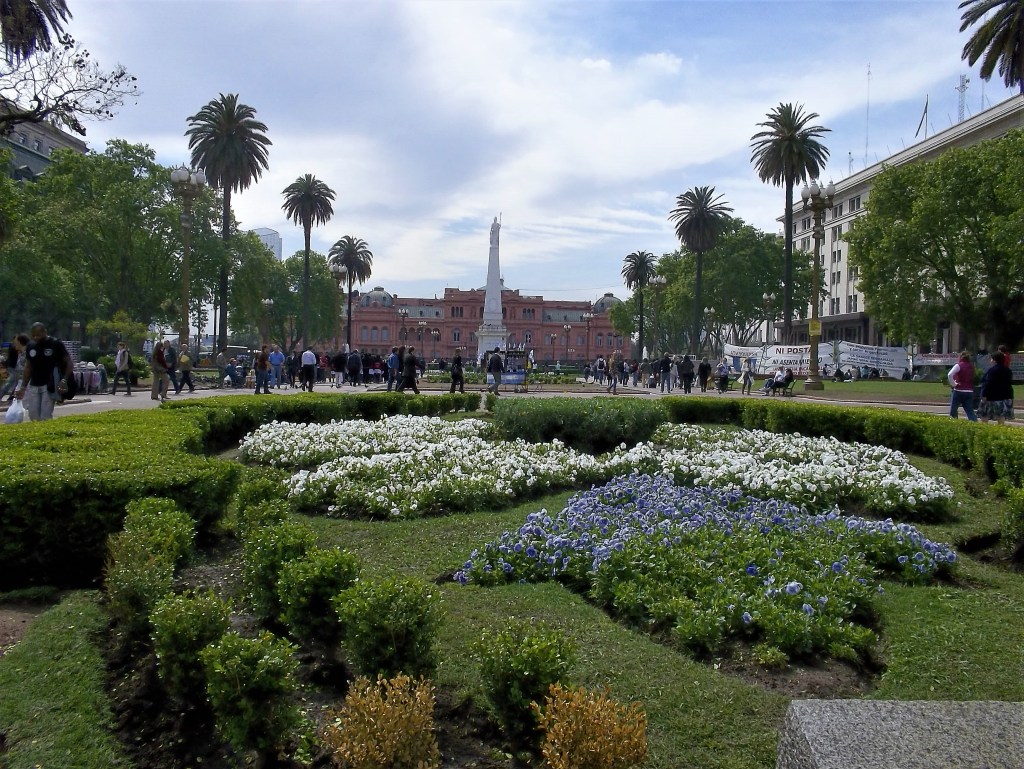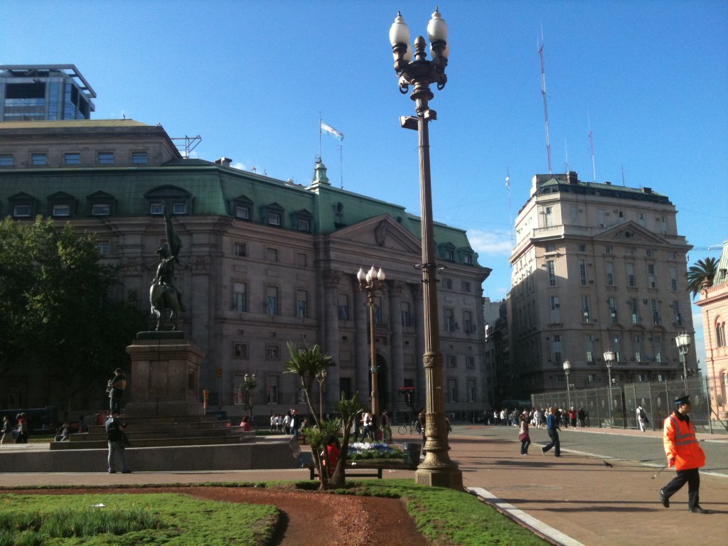 A Plaza de Mayo é a praça cívica da cidade (em frente à Casa Rosada) e onde ocorrem comemorações e manifestações. A mais conhecida é o encontro das Mães e Avós de Mayo – que reúne as mães e avós de pessoas desaparecidas durante a ditadura militar na Argentina. Elas pleiteiam saber o que aconteceu com seus filhos e netos (muitos bebês) e onde estão enterrados ou quem os criou (muitos militares acabaram ficando com os bebês que nasceram quando as mães estavam presas em centros de detenção e tortura). A ditadura na Argentina durou de 76 a 83. Quando fomos, presenciamos uma manifestação.