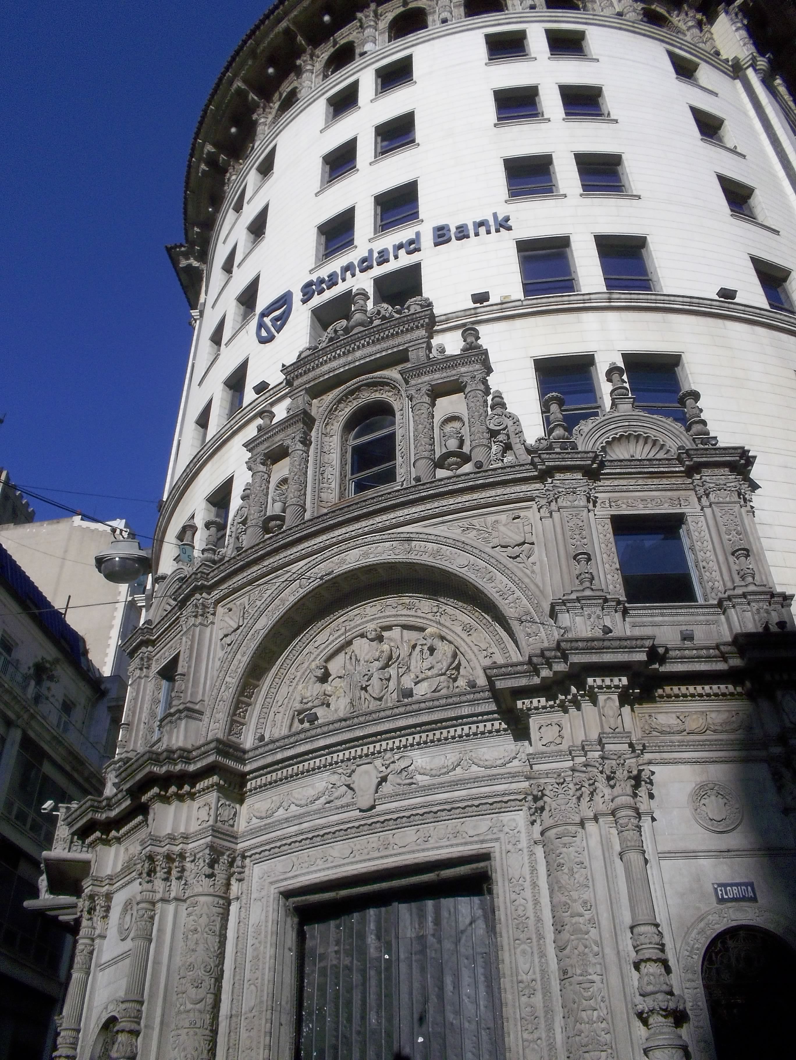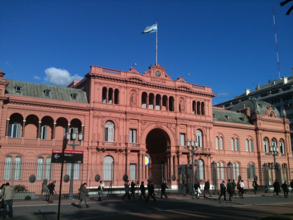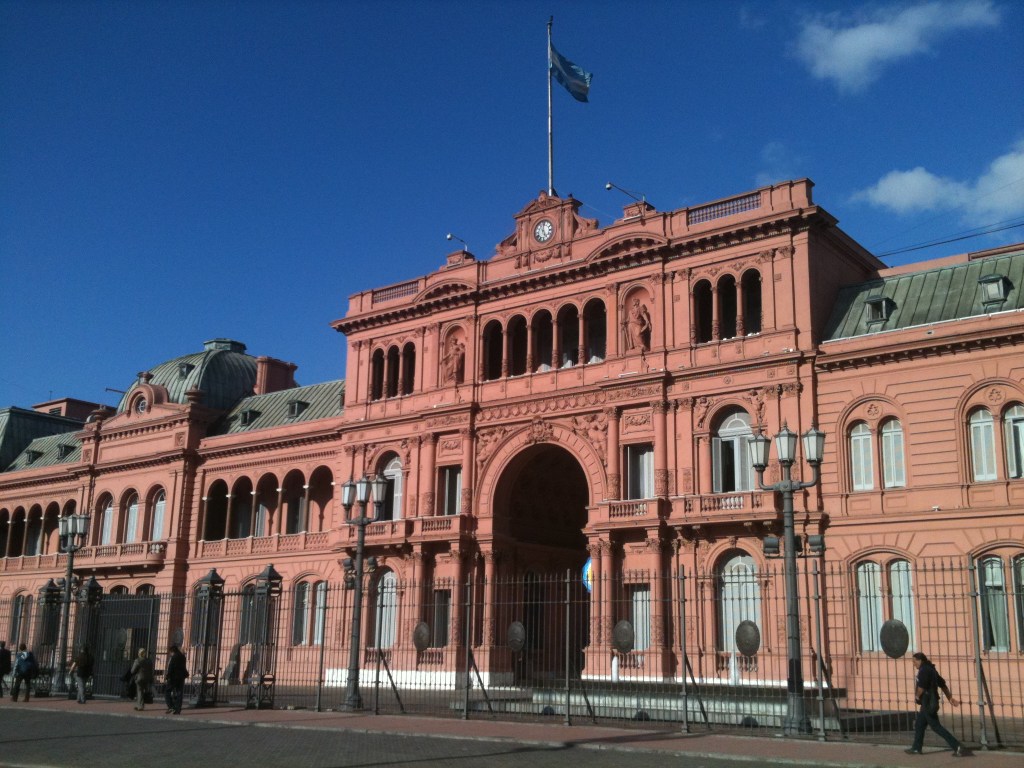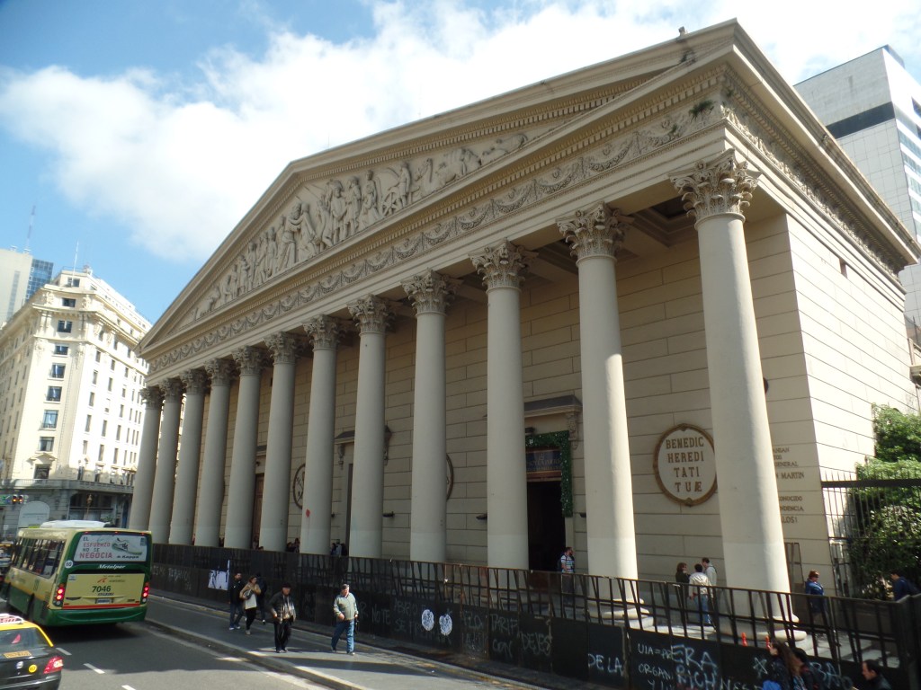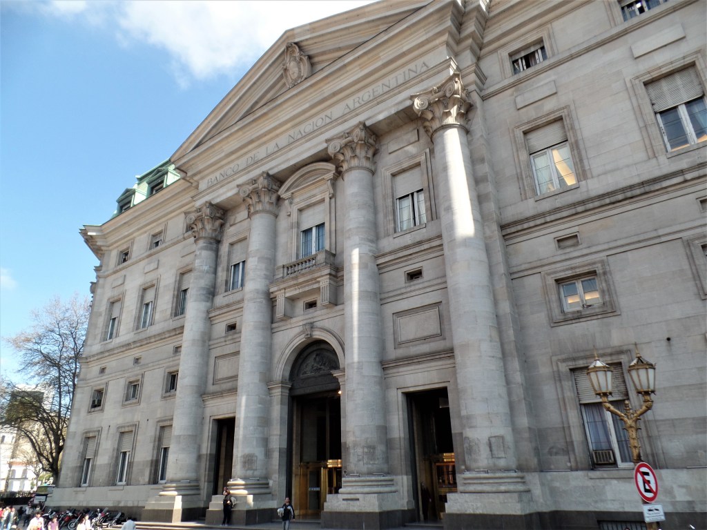A Casa Rosada é o Palácio do Governo da Argentina e se pode visitar por dentro quando o presidente não está dando expediente. Não o fizemos. Parece-se com o La Moneda de Santiago. Vale umas fotos em frente, mas não é nada de mais. Do outro lado da Plaza de Mayo – de frente para a Casa Rosada, está um dos edifícios mais antigos da cidade, o Cabildo (que era a prisão da Buenos Aires colonial). E do outro lado o lindo edifício do Banco da Argentina, com suas colunas greco-romanas.