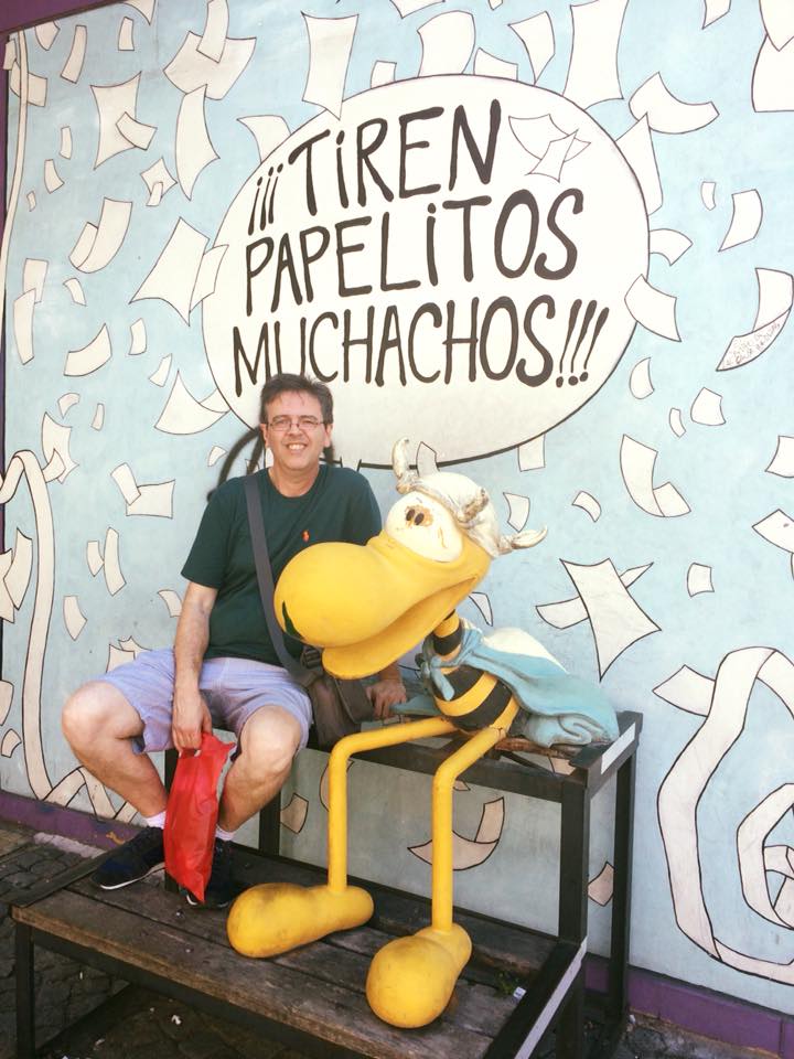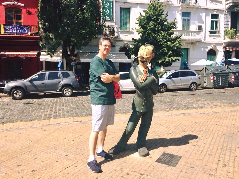 E prepare-se para caminhar um pouco enquanto procura as estátuas dos personagens de famosas histórias em quadrinhos argentinas! Justamente com a Mafalda, na esquina da Chile com a Defensa, começa o Paseo de la Historieta. Uma coisa boa do trajeto foi poder explorar ruas de San Telmo que de outra forma não estariam em nosso roteiro. Algumas das estátuas não estão, infelizmente, muito bem conservadas, mas a brincadeira de “caça ao tesouro” foi divertida e tiramos várias fotos com Isidoro Cañones (El Playboy), Larguirucho, Don Fulgêncio, Clemente (o fanático por futebol), Las Chicas Divito, Patoruzú (E Cacique Tehuelche), Patoruzito e Isidorito y el Gaturro. Como a passagem estava interrompida por obras em Porto Madero, não seguimos adiante, mas gostamos bastante do passeio.