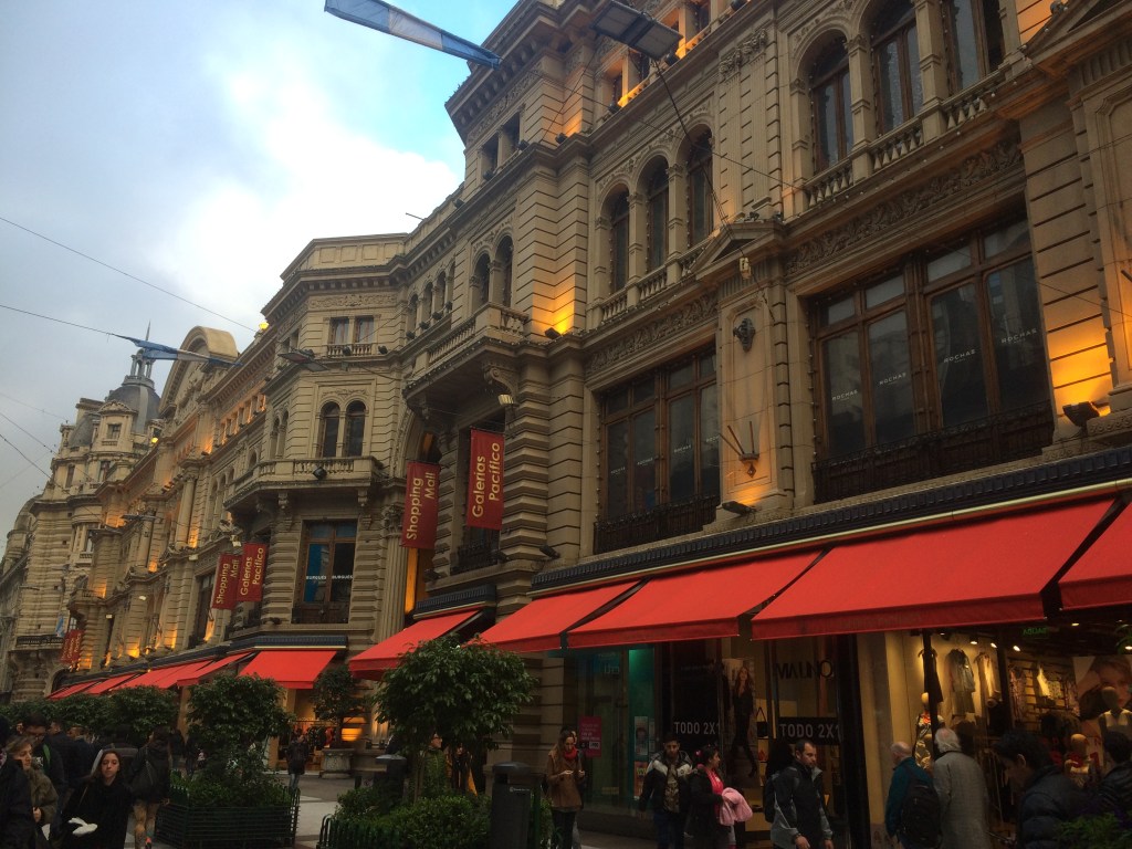 Na Calle Florida fica o O Shopping Galerías Pacífico. Ele fica em um prédio neoclássico que antigamente era um teatro e foi todo renovado. Por dentro a grande atração são os afrescos pintados no teto. É magnífico e lembra muito a Galeria Lafayette em Paris. Vale entrar para tirar fotos e tomar um café (as lojas são na grande maioria as de grife e muito caras). A praça de alimentação fica no subsolo e é pequena, mas tem boas opções de comida saudável além das lanchonetes tradicionais. Lá você também pode trocar dinheiro com segurança, pois tem um stand de casa de câmbio. (As taxas podem ser piores que na rua, mas não vale a pena arriscar, pois os mesmos cambistas dão a letra para os punguistas).