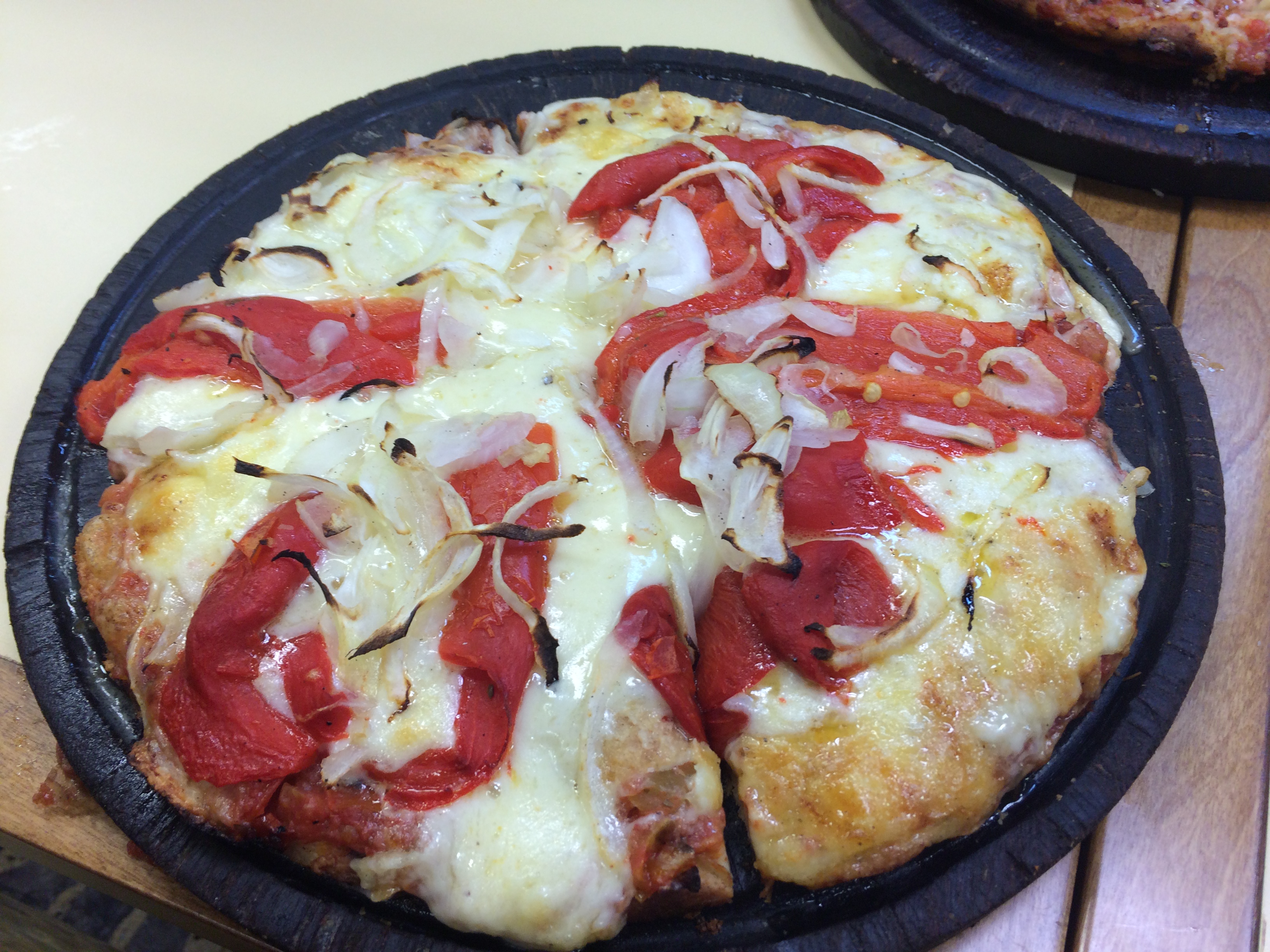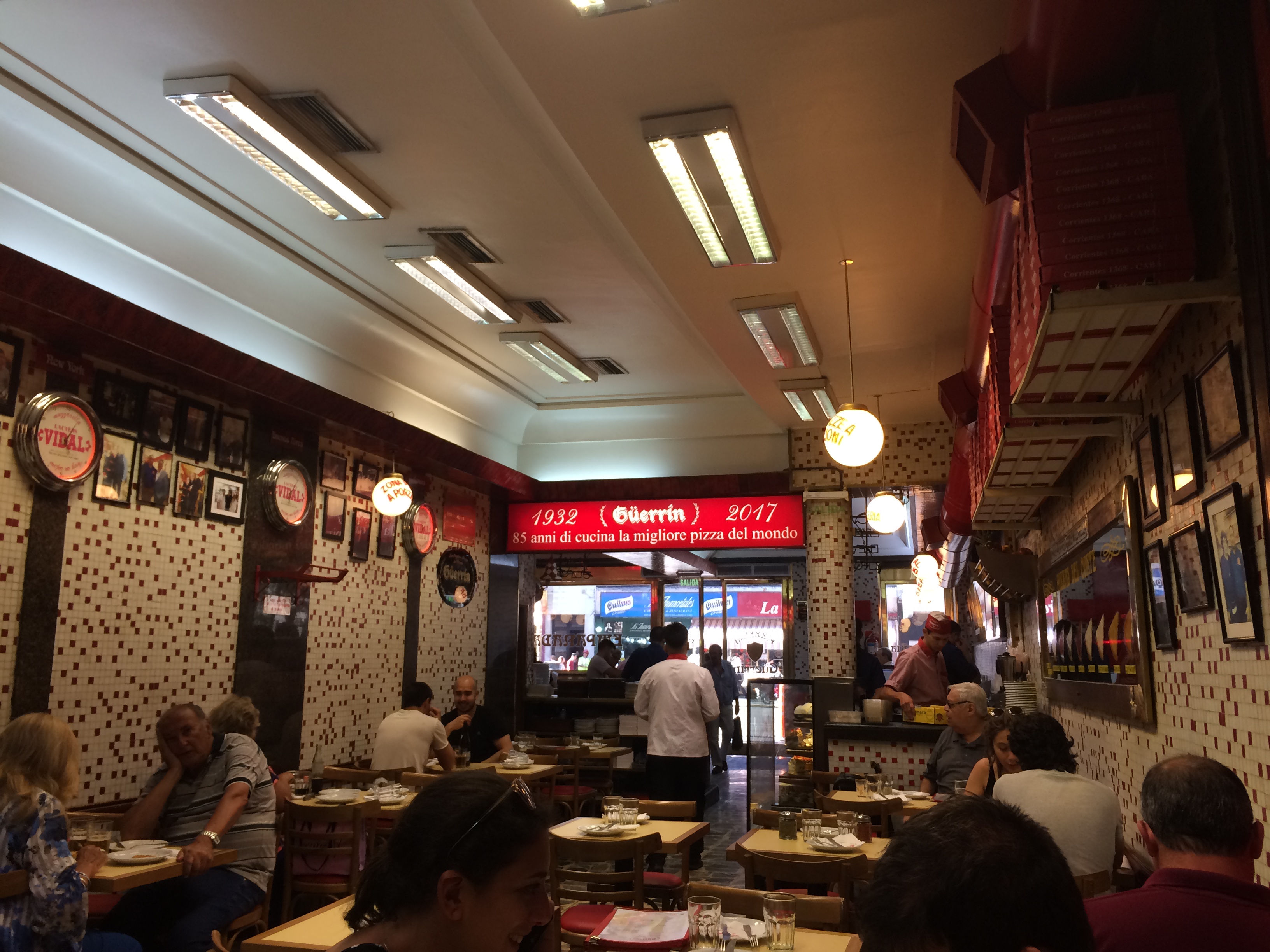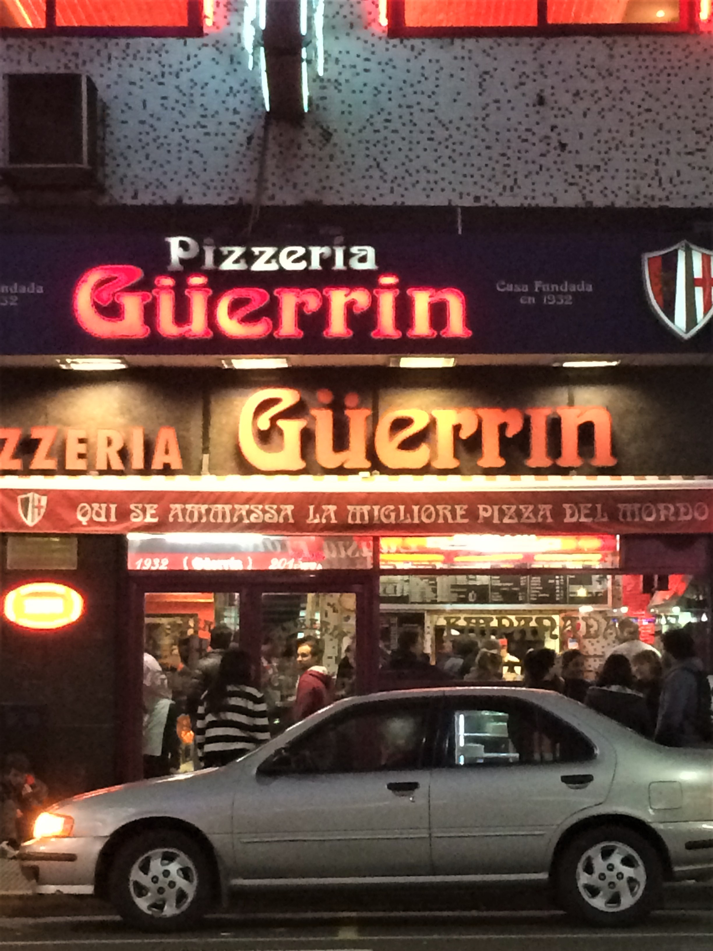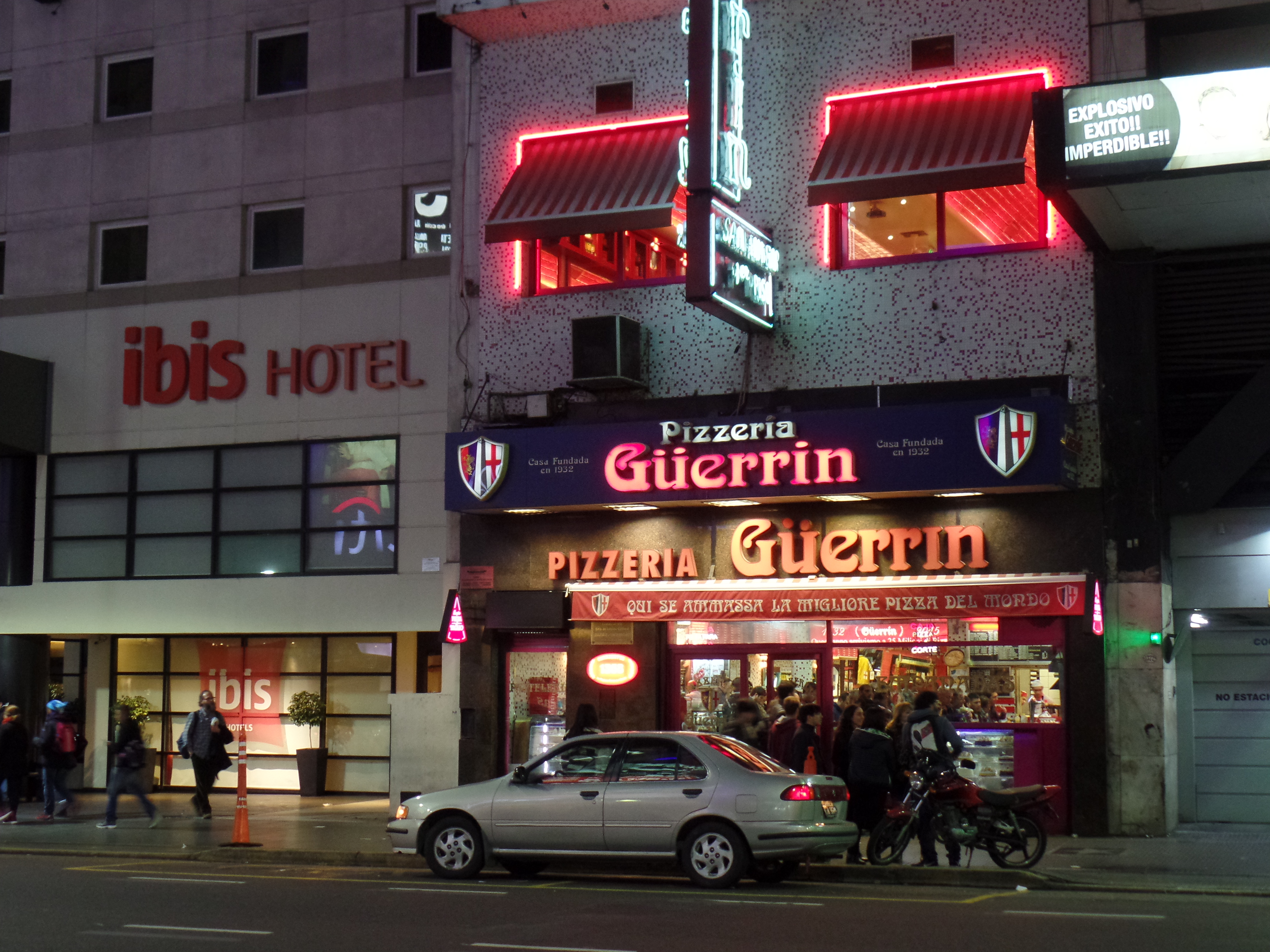 A Guerrín é muito tradicional. É de 1932 e conhecida como uma marca registrada da cidade, assim como os teatros em frente a ela, o ator Ricardo Darín, e a cerveja Quilmes. Como nos hospedamos no Ibis Obelisco na Av. Corrientes, resolvemos experimentar, pois ela fica ao lado do hotel. Só pelo burburinho logo em frente já imaginávamos que o local era concorrido. E com toda razão. As pizzas são simplesmente maravilhosas! Com muuuita cobertura de mozarela e demais ingredientes sobre uma massa grossa, tipo de pão. E são enormes. Experimentamos a Supreme, com palmito e champignon, a Calabresa e a Margherita. Todas sensacionais! Para completar um ambiente de cantina com boteco, muito simples e descontraído. Valeu muito! Ela fica na Av. Corrientes, 368.