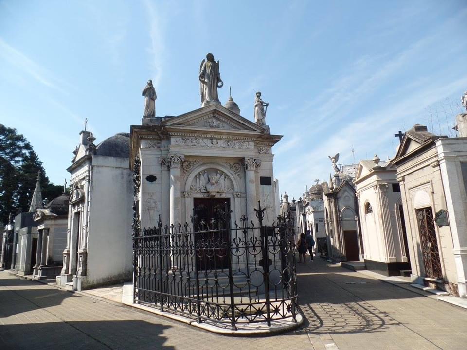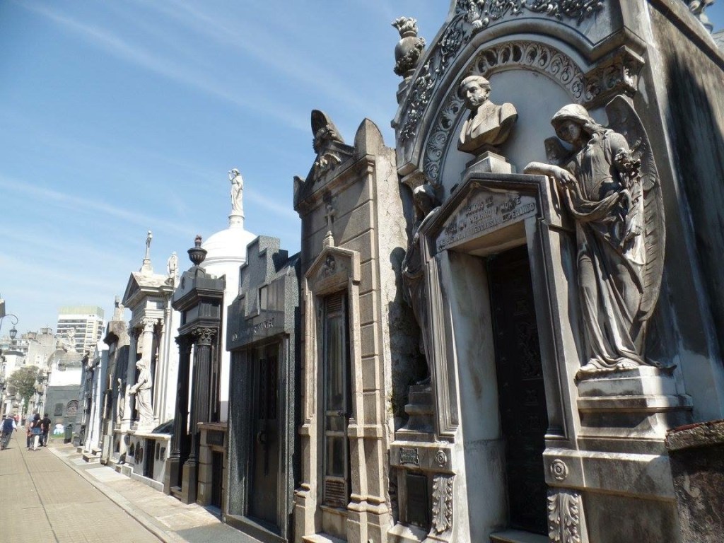 O Cemitério em si é enorme, tem ruas e até avenida principal e os túmulos são imponentes. Pode-se encontrar estudantes de Arte sentados com suas pranchetas, copiando os desenhos das lápides. Muitas esculturas foram feitas por artistas estrangeiros (italianos principalmente), pois era comum as famílias ricas encomendarem as obras da Europa para adornar os túmulos. Alguns são tombados pelo patrimônio histórico nacional. O Cemitério foi inclusive cenário de uma minissérie de TV Argentina de muito sucesso, chamada Epitáfios. É uma das maiores e mais bonitas necrópoles do mundo. O túmulo mais visitado por locais e turistas é o de Eva Perón, mulher do Presidente mais querido do país. Quando fomos era o aniversário de sua morte e havia muitas comemorações e homenagens.