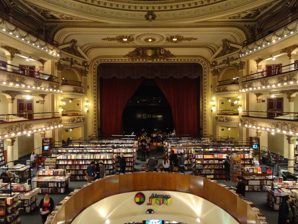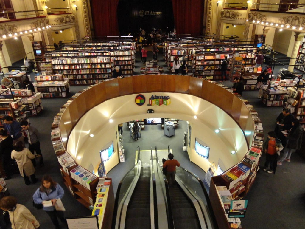 Ainda na Recoleta, na Avenida Santa Fe, 1860 , fica a Ateneo Splendid. No ranking das 10 mais bonitas do mundo, ela é famosíssima por ser um teatro transformado em livraria. Ganhou o nome de Teatro Grand Splendid e suas portas foram abertas ao público em 1919. O templo dos livros mantém características do antigo teatro, com camarotes iluminados e um palco com uma cortina vermelha. A livraria é realmente linda e pouca gente a visita porque está fora do circuito turístico de BA, mas vale muito a pena percorrer os 3 andares, além de tomar um café no palco, transformado em Cafeteria. Os livros são em espanhol, mas há vários DVDs na parte inferior da livraria, alguns com legenda, e o Cinema Argentino é sensacional. (Na Calle Florida também há uma pequena filial da Ateneo, mas o grande barato é conhecer a original). Imperdível!