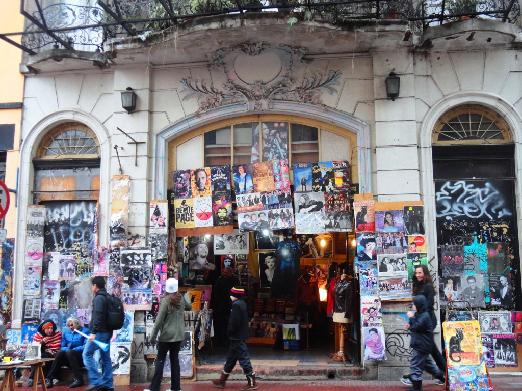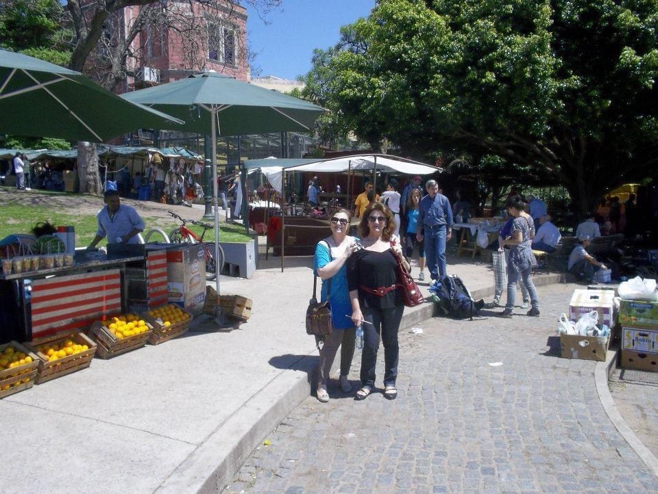 Quando fomos também havia um grupo de músicos de jazz tocando em uma esquina – eram muito bons. Como a feira enche, cuide-se com batedores de carteira. Nas redondezas pode-se também comer um choripan (pão com linguiça e molho chimichuri – bem gostoso!) Dica: o chorizo é a nossa linguiça. O chouriço mesmo é “morcilla”.