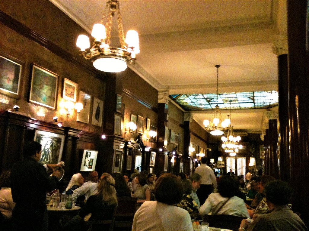 O Café Tortoni é tradicionalíssimo, de 1858, e todo turista tem que ir pelo menos uma vez, nem que seja somente para um café. O ambiente é uma viagem no tempo – parece muito os cafés parisienses e ainda guarda os espelhos, lustres e cristais franceses da época de sua inauguração. Nós almoçamos lá em nossa 1a visita e na 2a fomos só para um café. À noite ele enche para o show de Tango (que também fomos) – o Teatro anexo é bem pequeno, por isso é bom chegar cedo. Outro ponto importante é que embora o Café aceite cartão para pagar a comida/bebidas, o espetáculo só pode ser pago em dinheiro. É um show simples com dois casais normalmente, mas bem agradável. Ele fica na Avenida de Mayo, 825 (próximo à Plaza de Mayo e Casa Rosada).