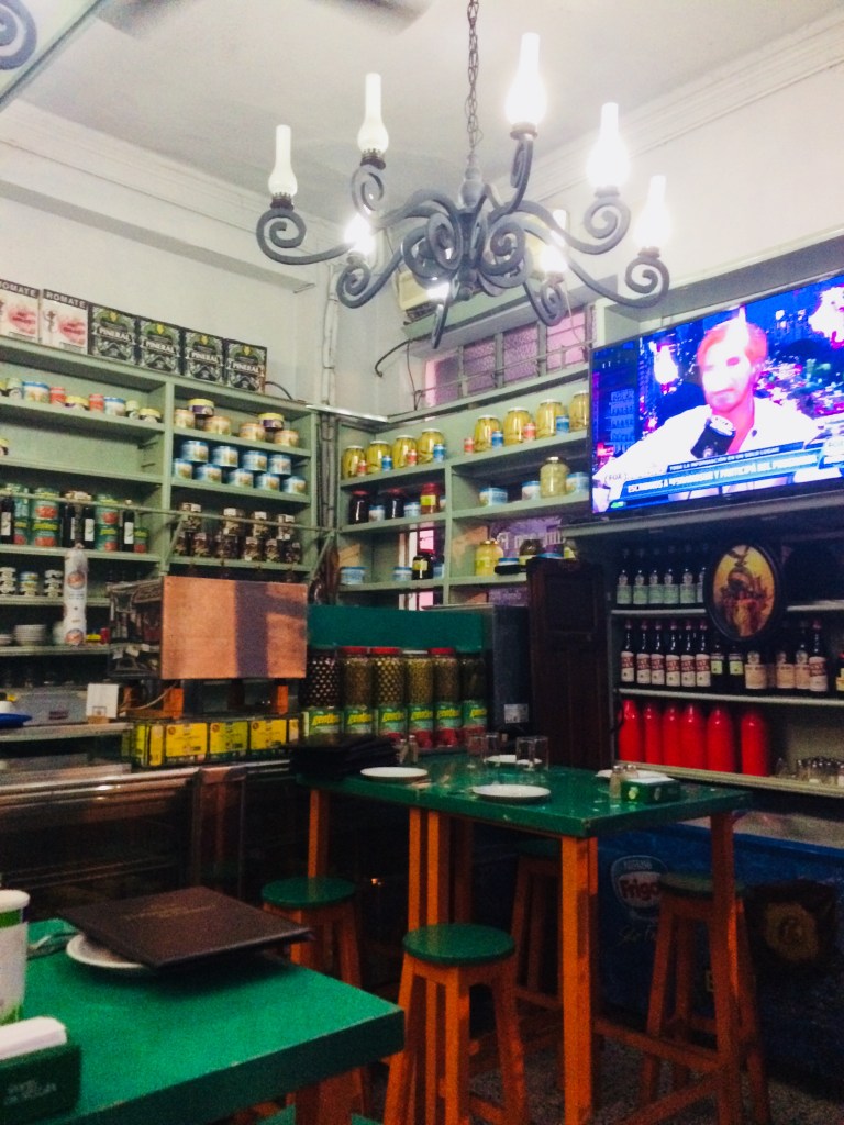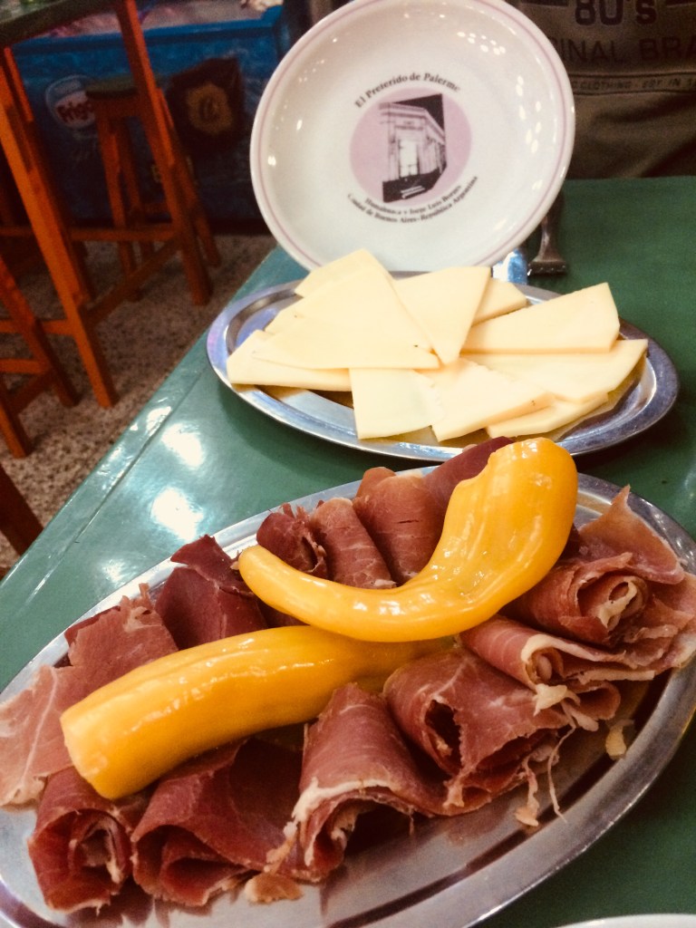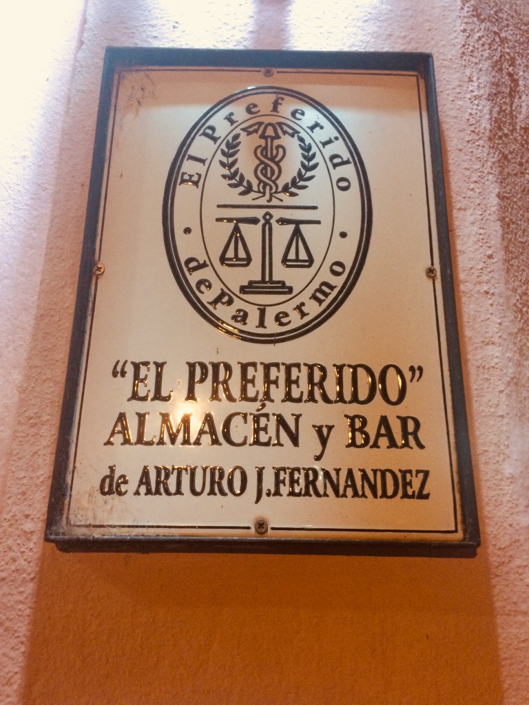 O Bodegón El Preferido é um dos Bares Notables de Buenos Aires (locais que foram palco de eventos históricos, culturais e literários importantes, tombados pelo patrimônio). De portas abertas desde 1952, fica em um clássico casarão de esquina e remete aos antigos armazéns de secos e molhados, com prateleiras de madeira cheias de latas e vidros de conservas e grandes peças de presunto defumado penduradas em vigas, em meio a candelabros. A modernidade entra por meio de uma grande TV de tela plana encaixada na armação de madeira verde-clara. Chegamos cedo e ficamos numa das mesinhas altas, ao lado da janela, para dali apreciar o movimento da rua Jorge Luís Borges.