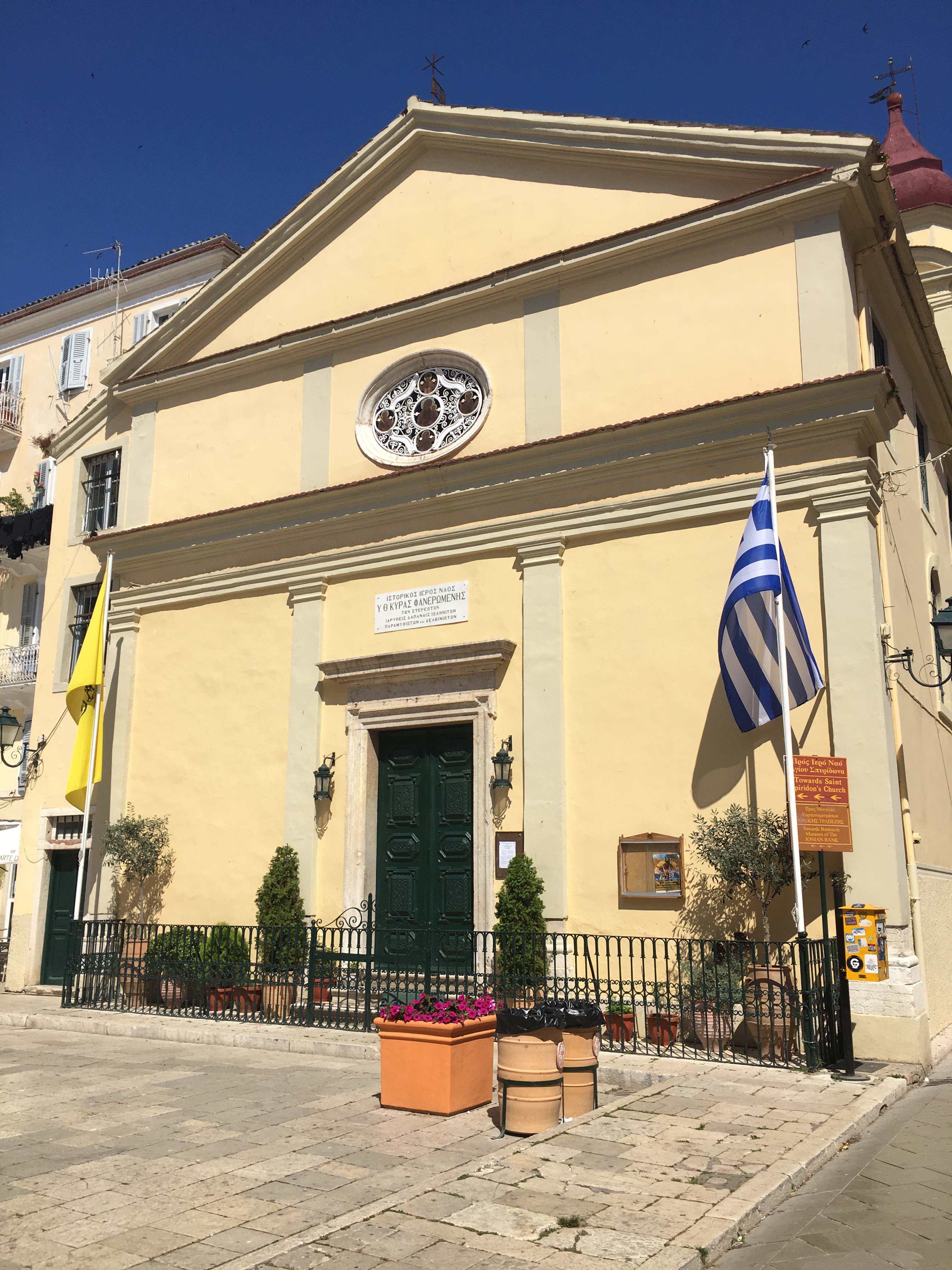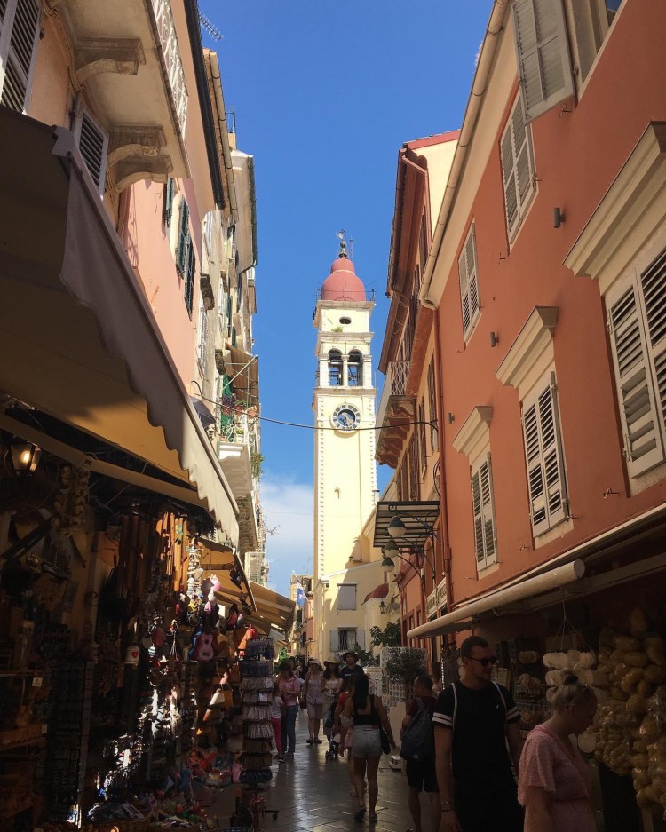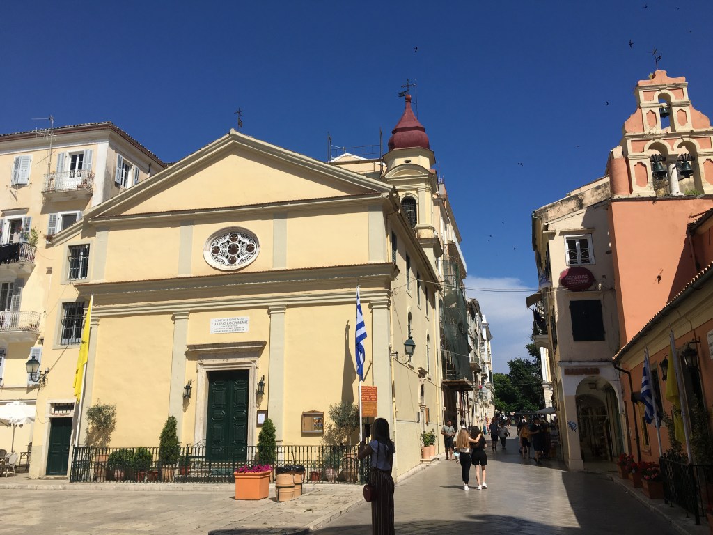 Entramos na Cidade Velha pelo Liston, um boulevard de pedestres em estilo francês construído em 1814. Próximo do Liston, está a Catedral Ortodoxa de Ágios Spyrídion (São Espiridião), o padroeiro de Corfu. Dentro está o corpo mumificado do santo que morreu em 349 depois de Cristo e a quem muitos milagres foram atribuídos, inclusive o de ter salvo a cidade de epidemias, da fome e da invasão turca em 1716.