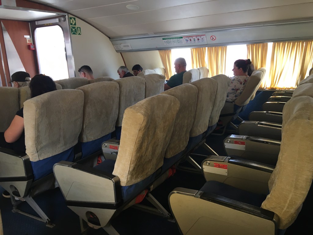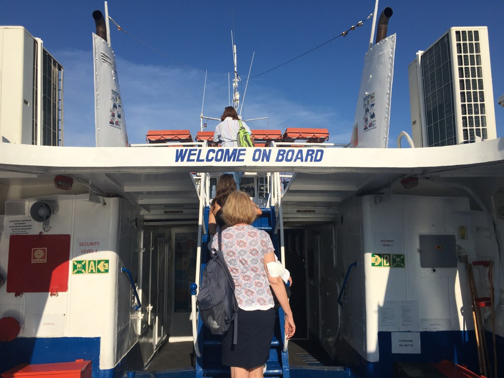 Tomamos café super cedo e compramos o passeio na Finikas Lines (ao lado do terminal), no próprio dia. Pagamos 19 euros por pessoa por trecho. A dica é chegar ao Terminal com antecedência de pelo menos 30 min. Como a gente estava saindo da Albânia e entrando na Grécia, tivemos que passar pela alfândega no porto e os barcos saem pontualmente no horário marcado. A viagem leva uma hora e meia. Se for no verão (junho/julho/agosto) use roupas leves, um boné ou chapéu, protetor solar e óculos de sol. Fomos em maio e já fazia bastante calor.