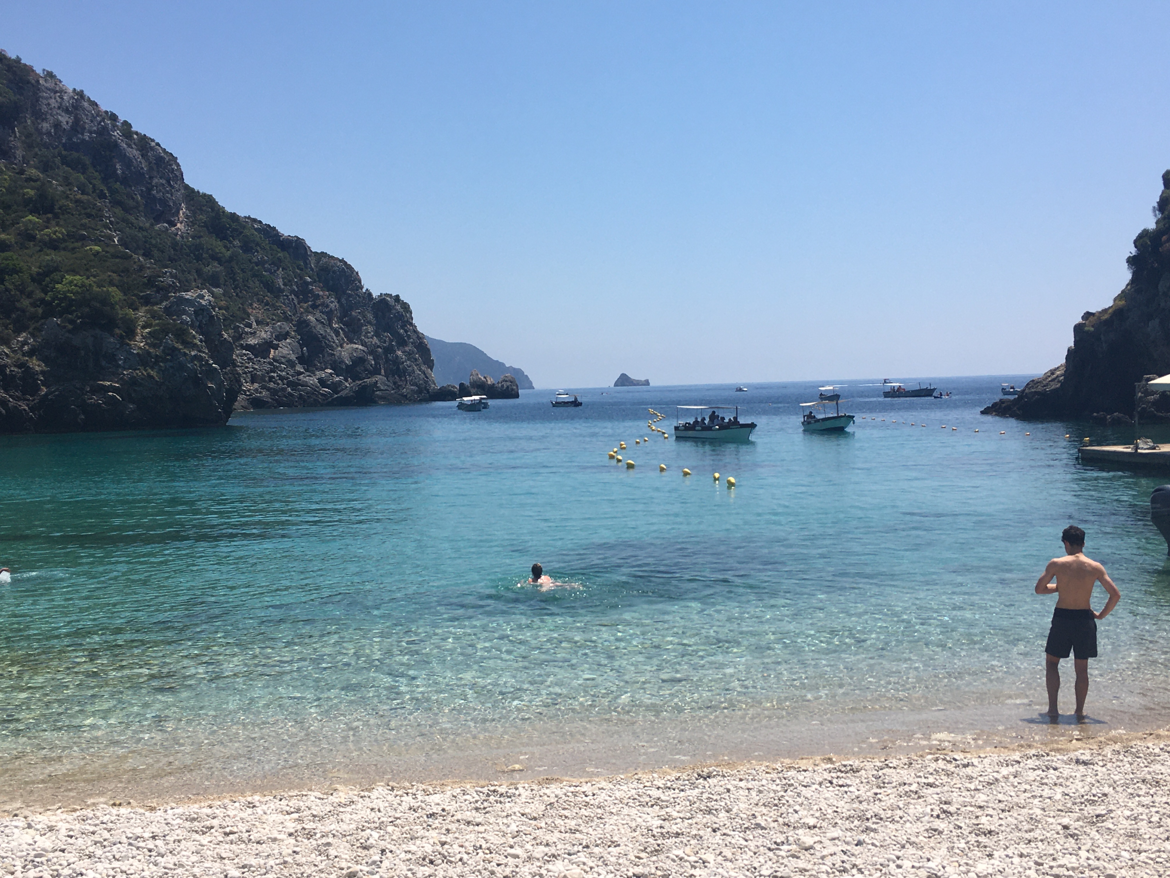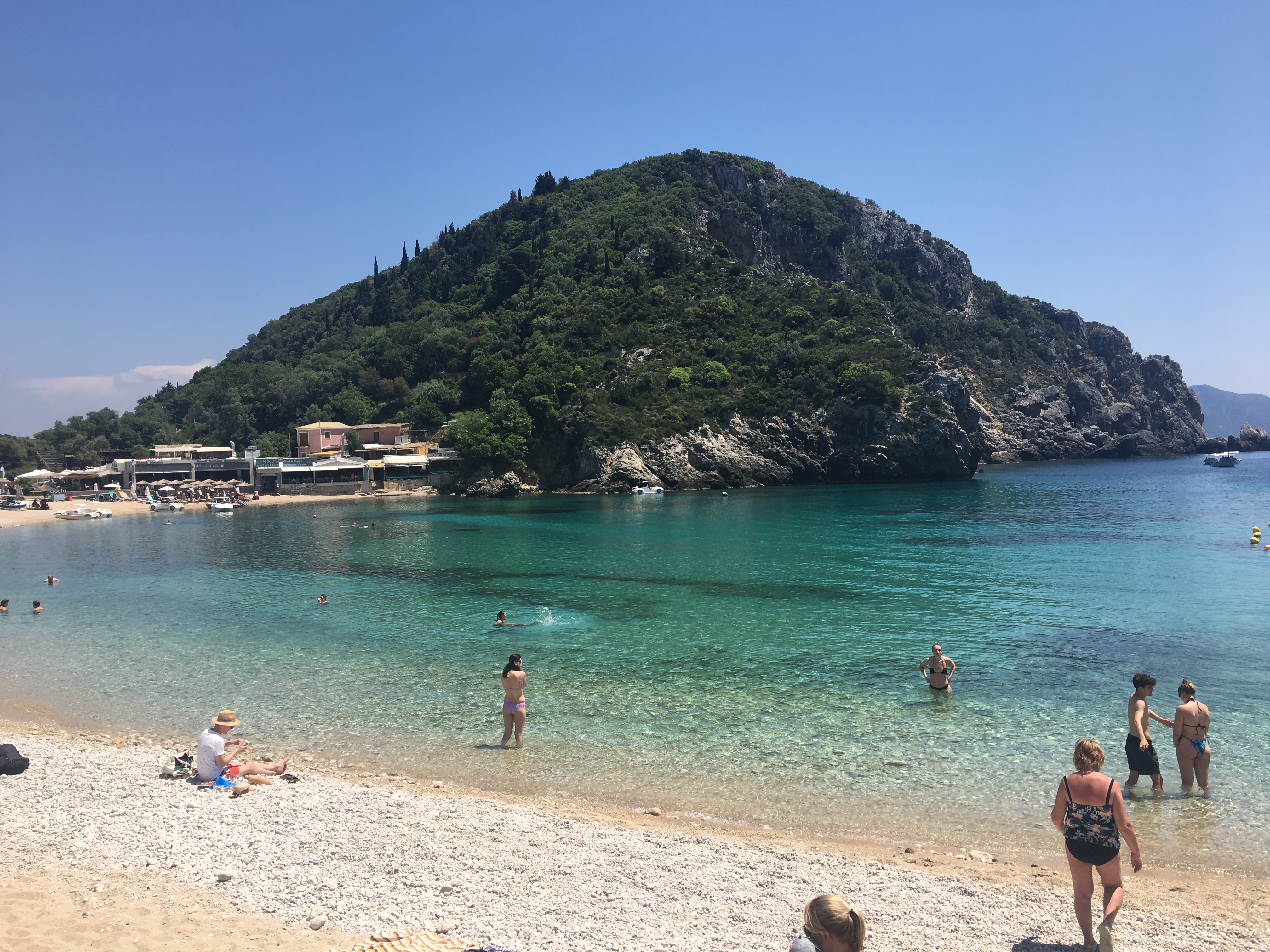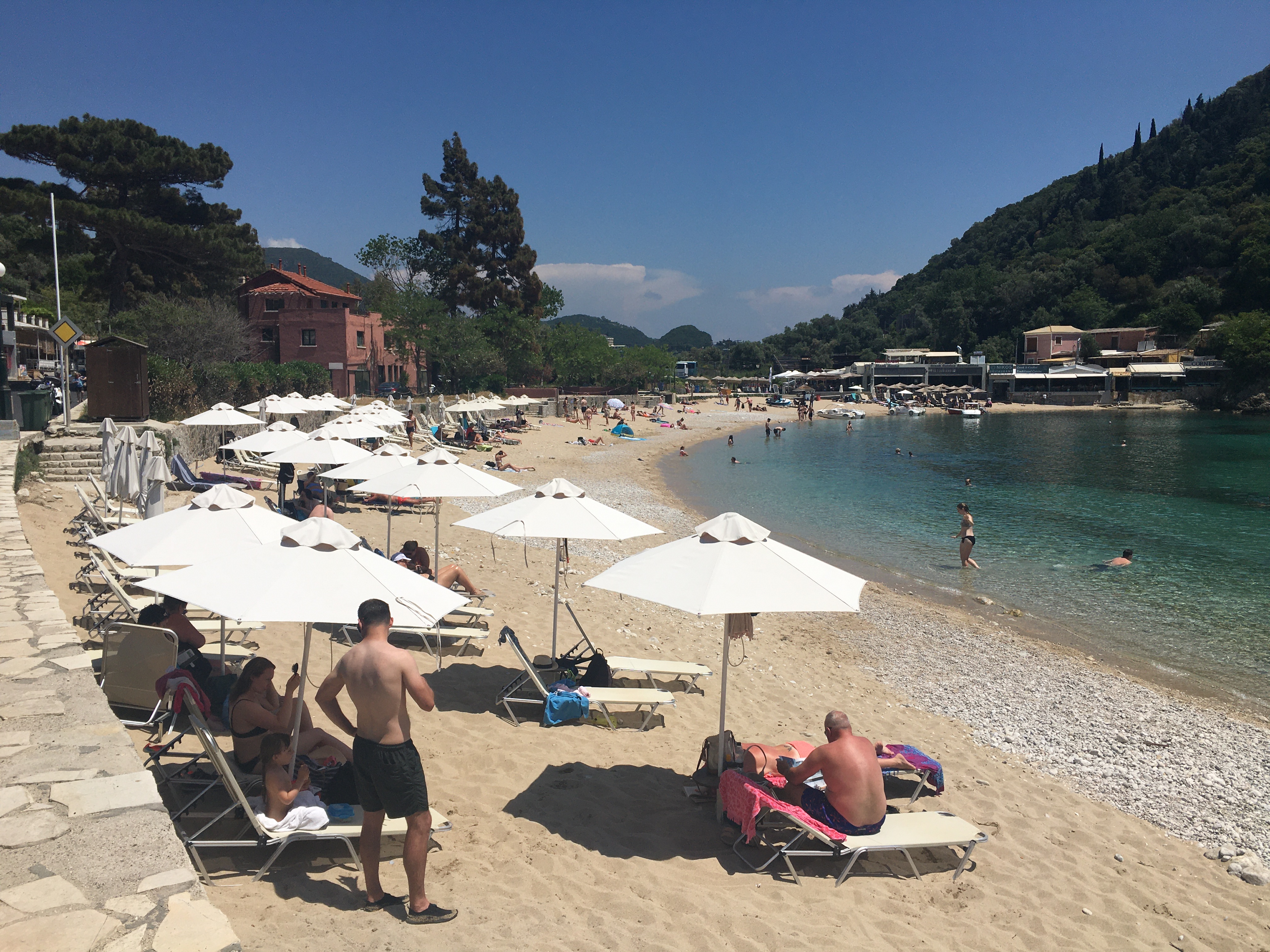 Descendo de volta à costa, ficam seis pequenas praias (muito lindas, mas a maior parte com pedrinhas em vez de areia). Segundo o Niko, é um dos lugares mais procurados pelos veranistas, mesmo na primavera quando o mar de Corfu é considerado frio, com temperaturas entre 15°e 20°.