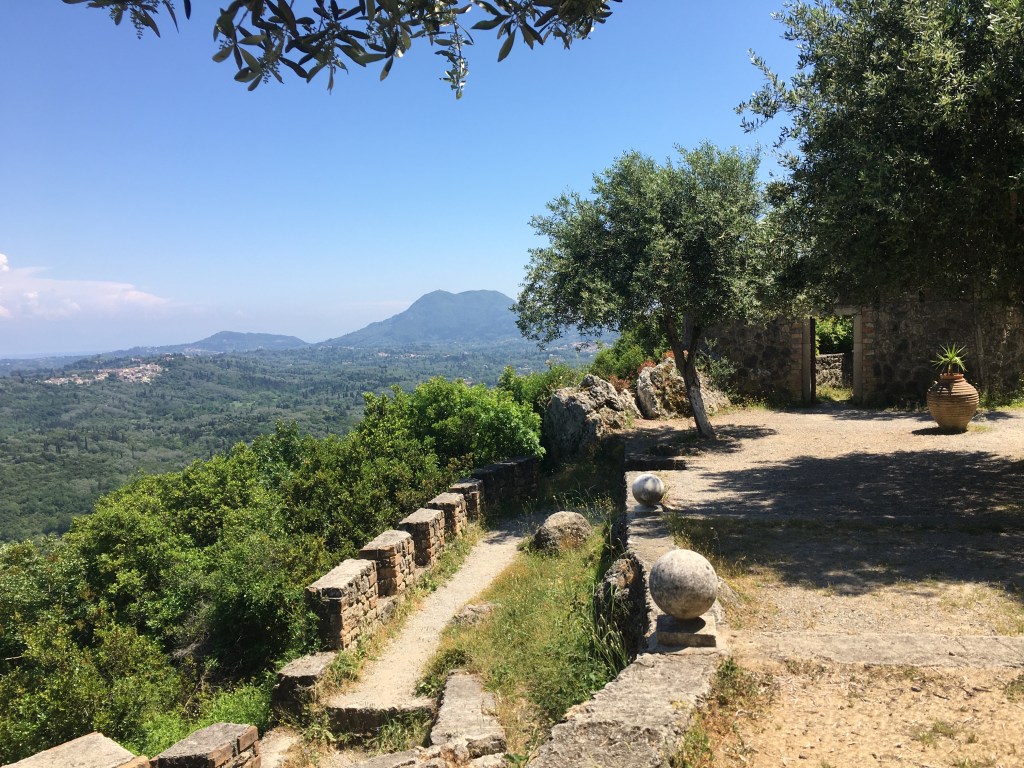 Pelekas é uma aldeia rodeada de oliveiras, construída sobre uma rocha com 270 metros de altura, na costa ocidental de Corfu. Dizem que era o lugar preferido do Imperador Guilherme II para as suas caminhadas e para admirar a vista. Lá em cima fica o chamado “trono do kaiser“, o famoso lugar onde o Imperador adorava ir meditar. Fomos até lá com o Niko, que fez uma paradinha numa loja local para experimentarmos o azeite e as azeitonas da região e também comprarmos algumas lembrancinhas.