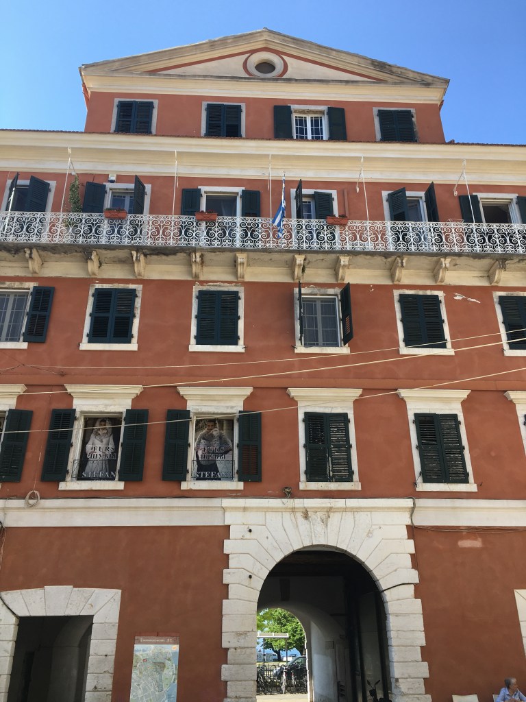 Fomos com nosso taxista, o Niko, até o Palácio Mon Repos, antiga residência da família real grega. Foi ali que o Príncipe Phillip, marido da Rainha Elizabeth II, nasceu, em 1921. (Quem assistiu a série The Crown vai lembrar). Historiadores dizem que a antiga cidade de Corfu ficava nesse local. Ela é chamada de Paleopolis (cidade velha em grego) e ainda há ruínas arqueológicas que se pode visitar. O palácio foi transformado em museu e tem um acervo de objetos do século XIX e uma exposição da história de Corfu. Não tivemos tempo de fazer a visita, mas valeu a parada.