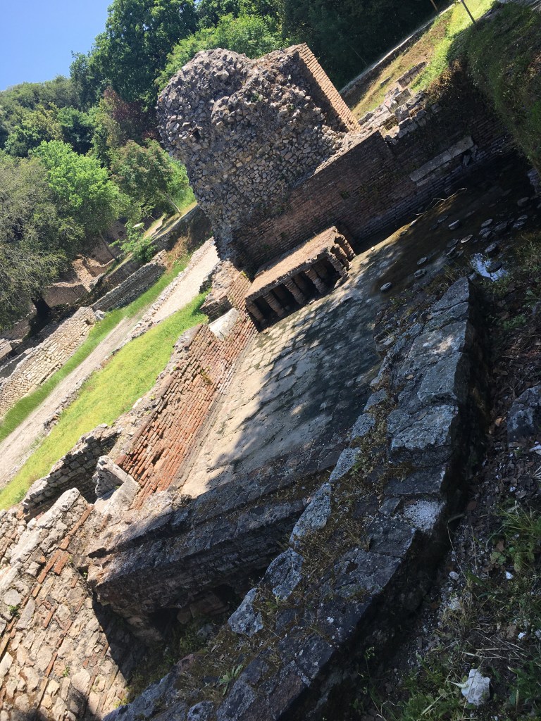 O Teatro foi construído no séc. II sobre um antigo teatro grego do séc. IV antes de Cristo. Ele fica parcialmente encrustado na encosta da acrópolis e acomodava cerca de 2.500 pessoas. Ao dar de cara com ele nos sentimos no filme Gladiador… parece que até ouvíamos a voz da Lisa Gerrard cantando: